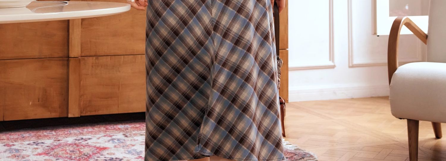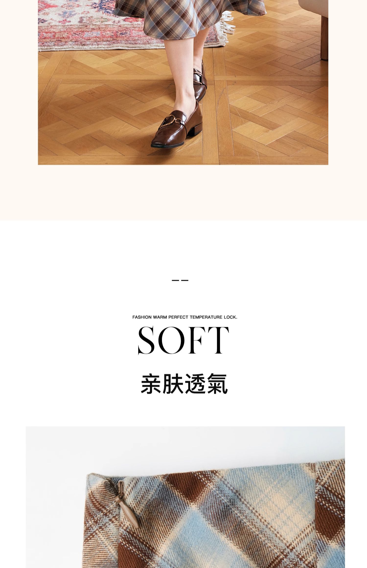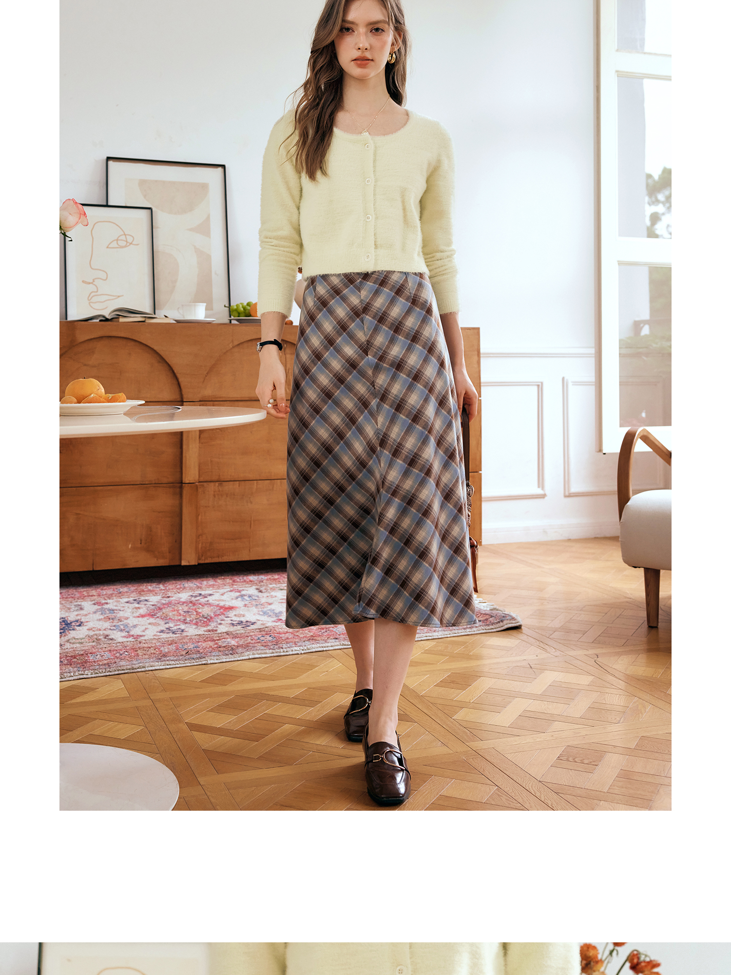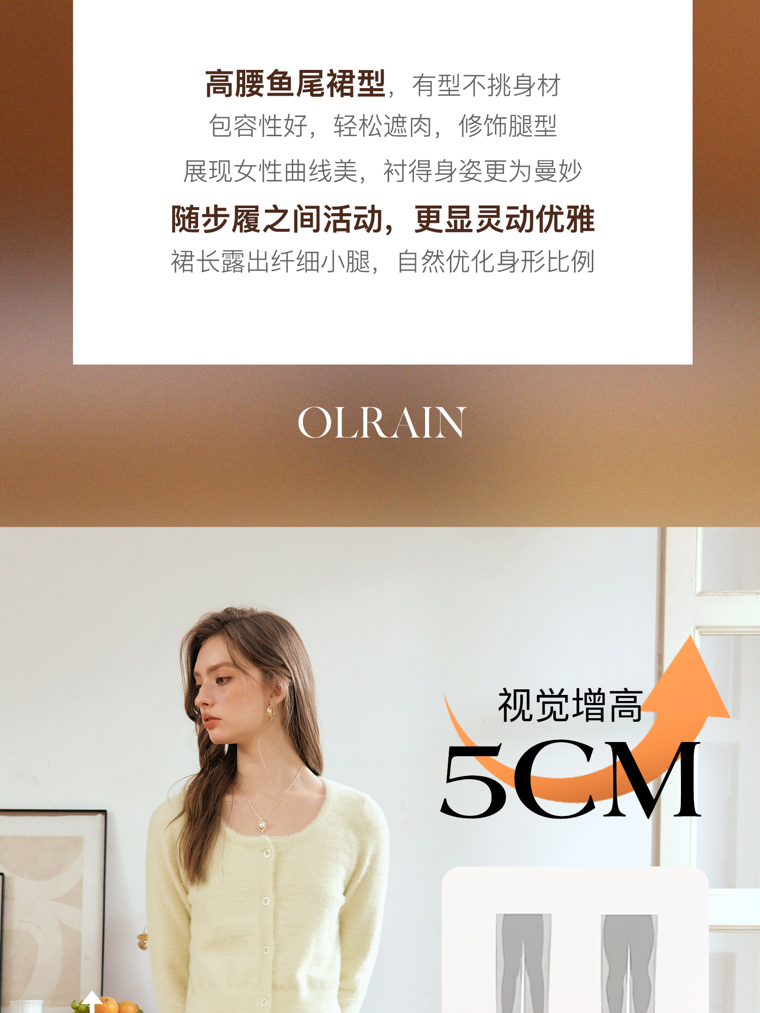 OLrain欧芮儿格纹半身裙女秋季2024年新款复古通勤斜裁鱼尾半裙