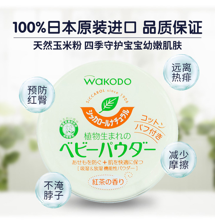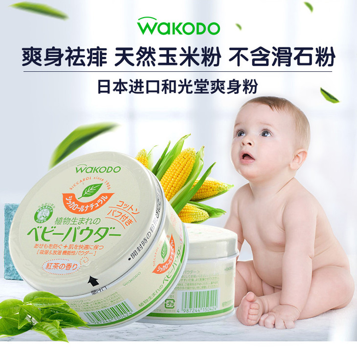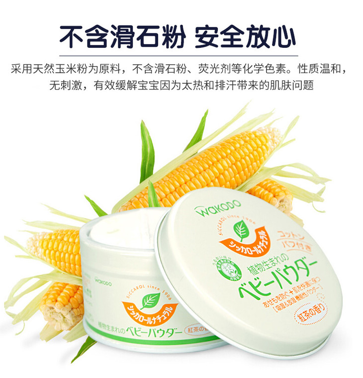 日本和光堂玉米爽身粉男女婴幼儿童宝宝红茶香痱子粉不含滑石粉