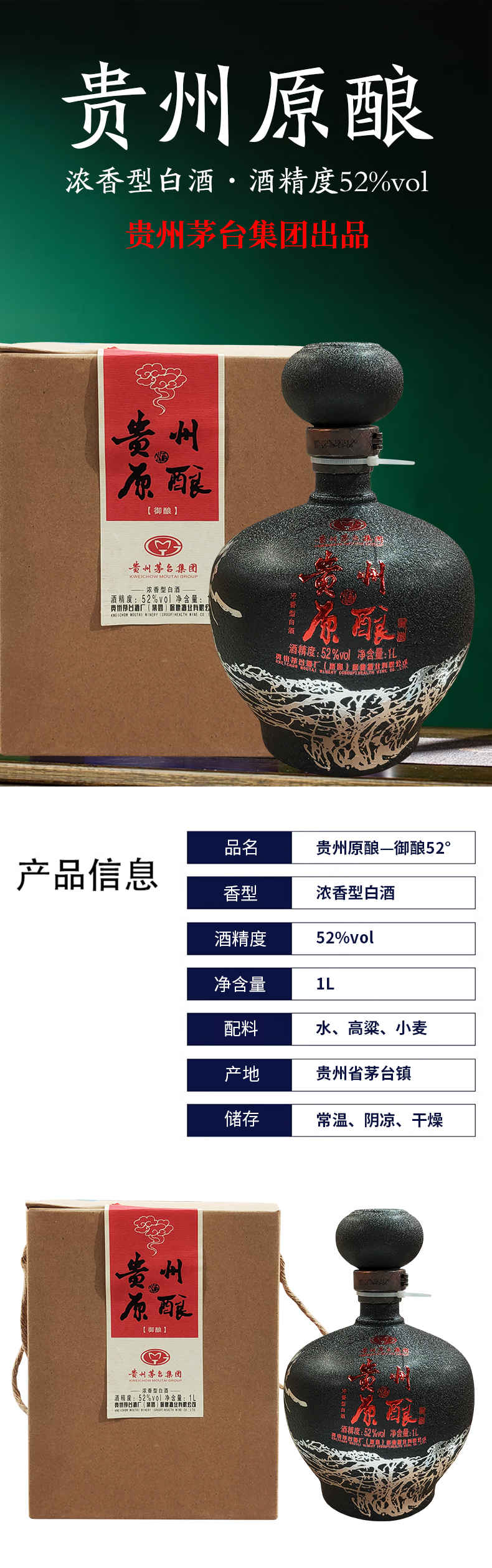 【浓香型】茅台集团 贵州原酿-御酿白酒1L 52度