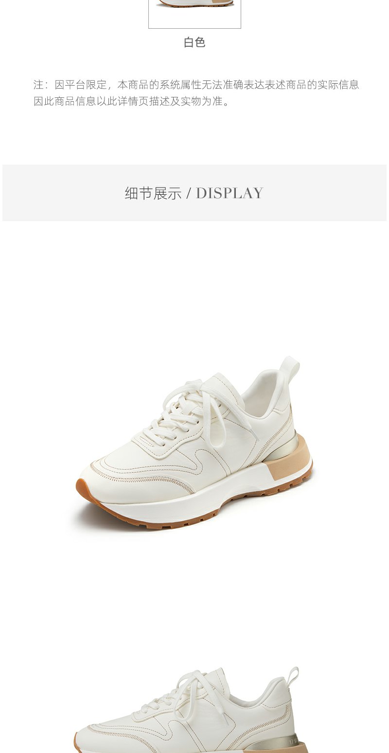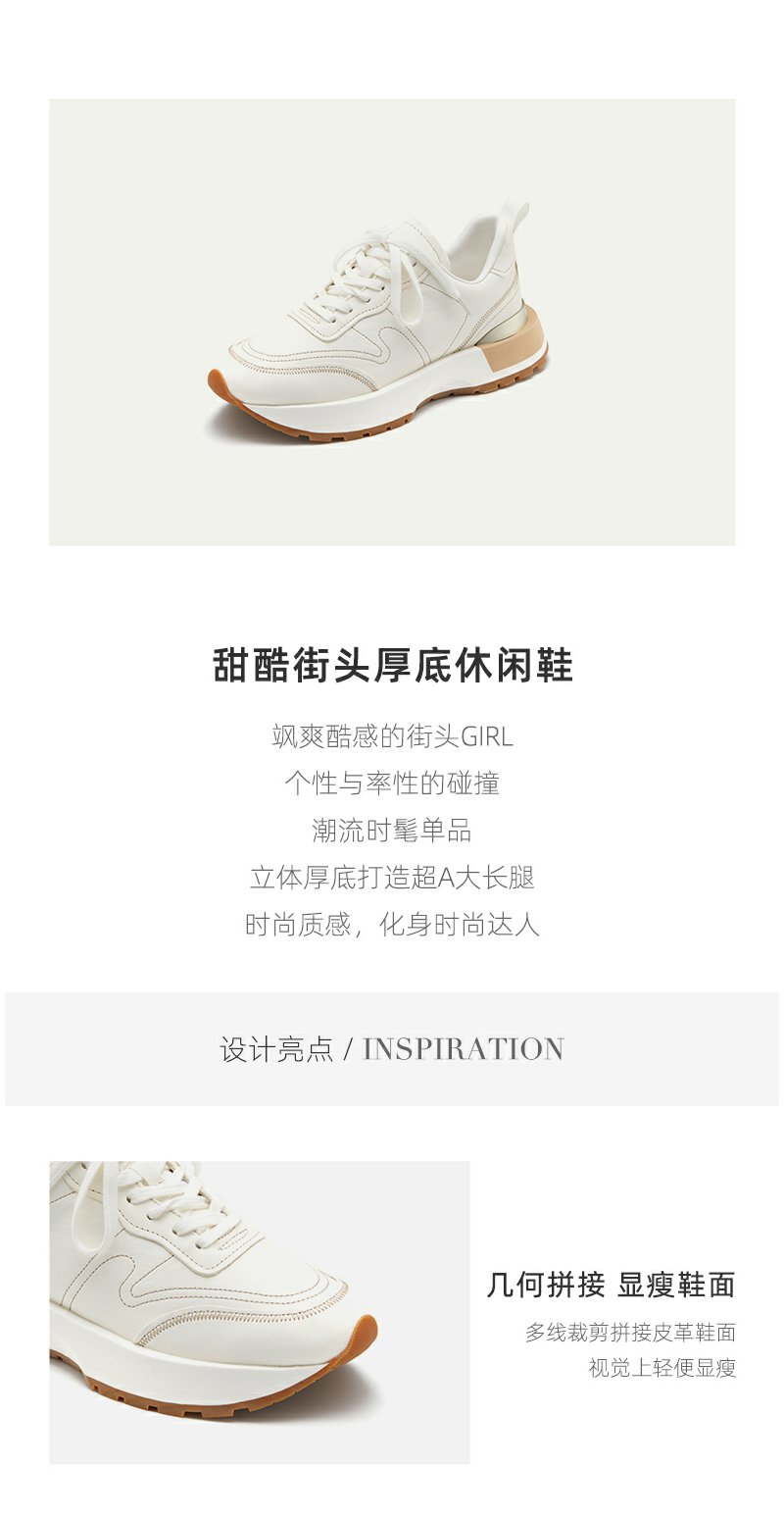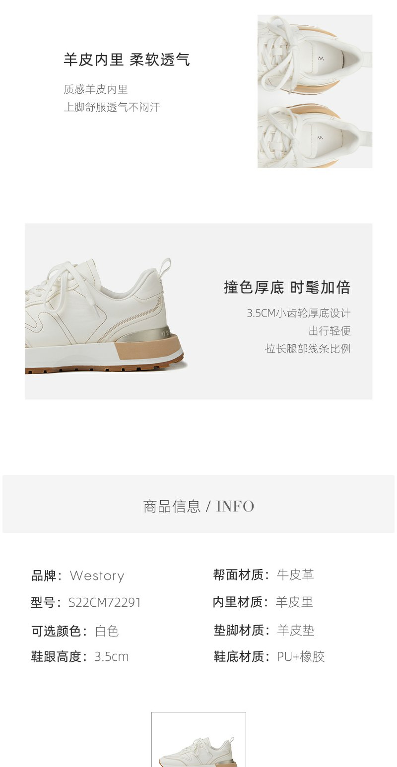 westory2022年春季新款真皮小白鞋厚底透气拼色时髦休闲鞋系带S22AM54611