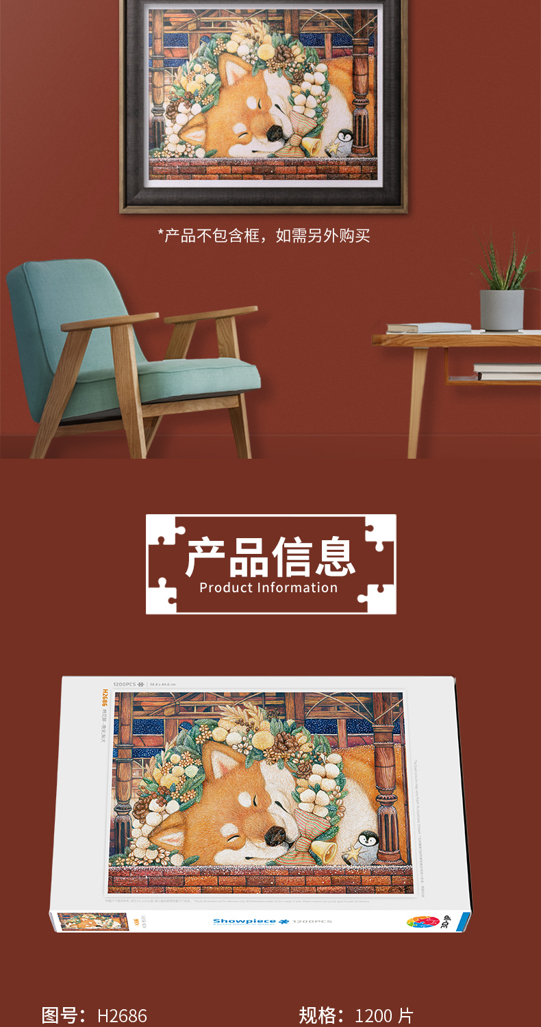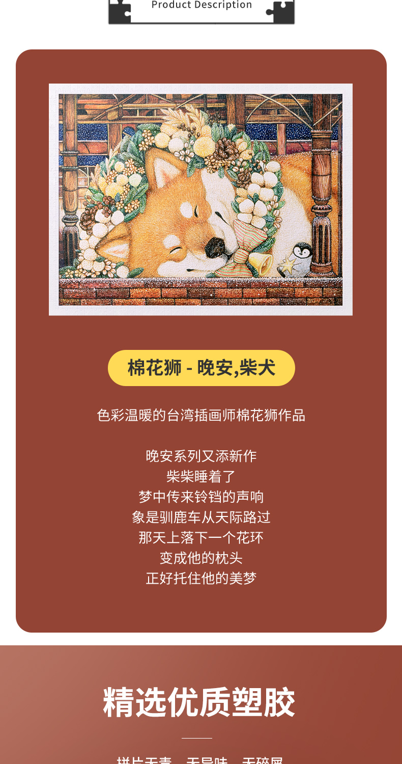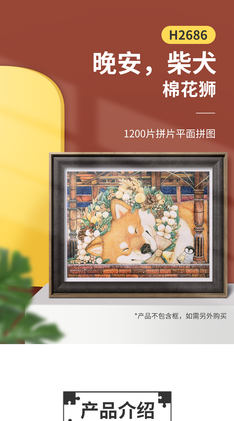 【折扣商品 不退不换】1200片 平面拼图 塑料拼图 H2686 棉花狮-晚安,柴犬