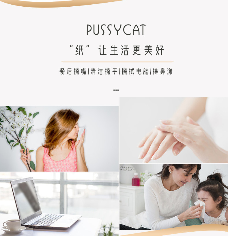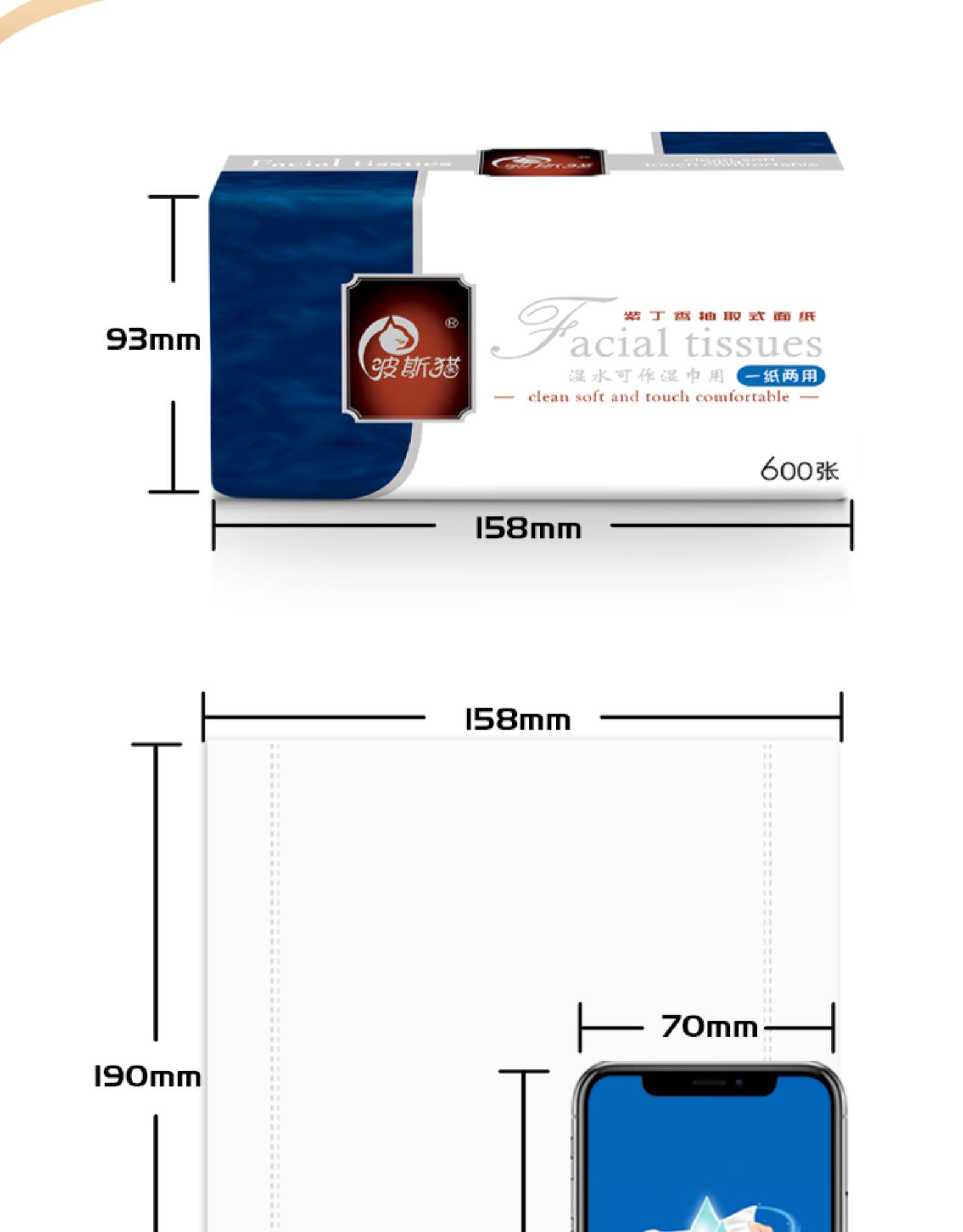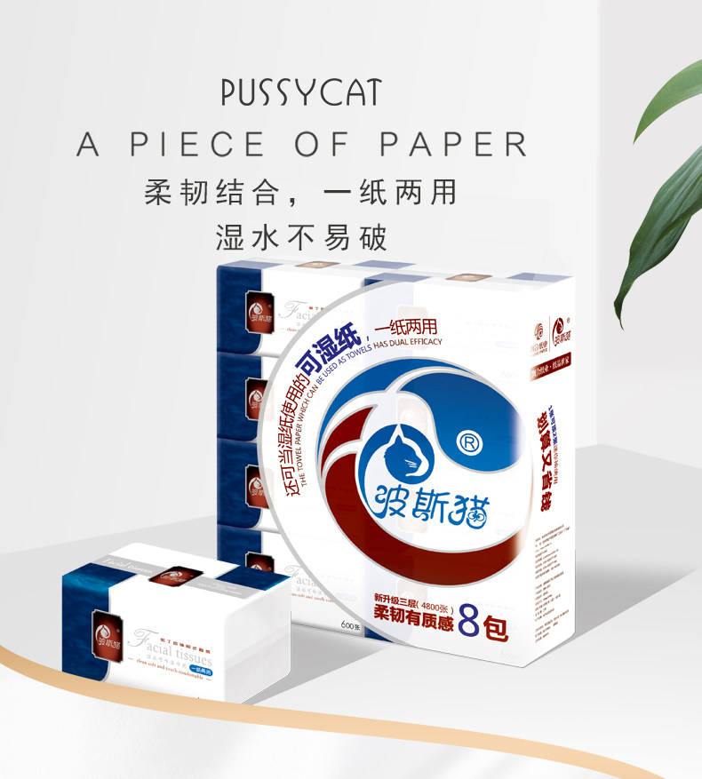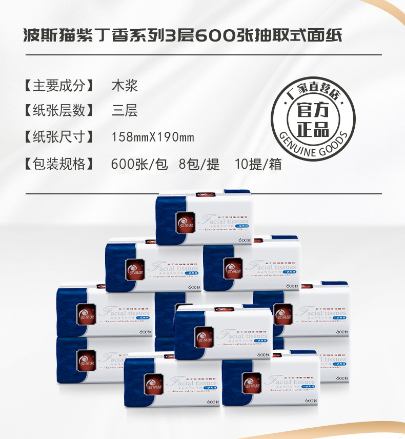 波斯猫紫丁香三层抽取式面纸600张*8包