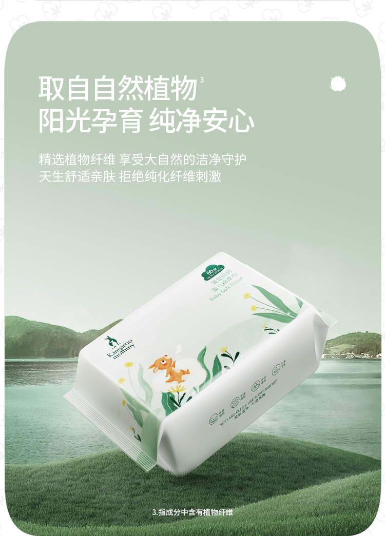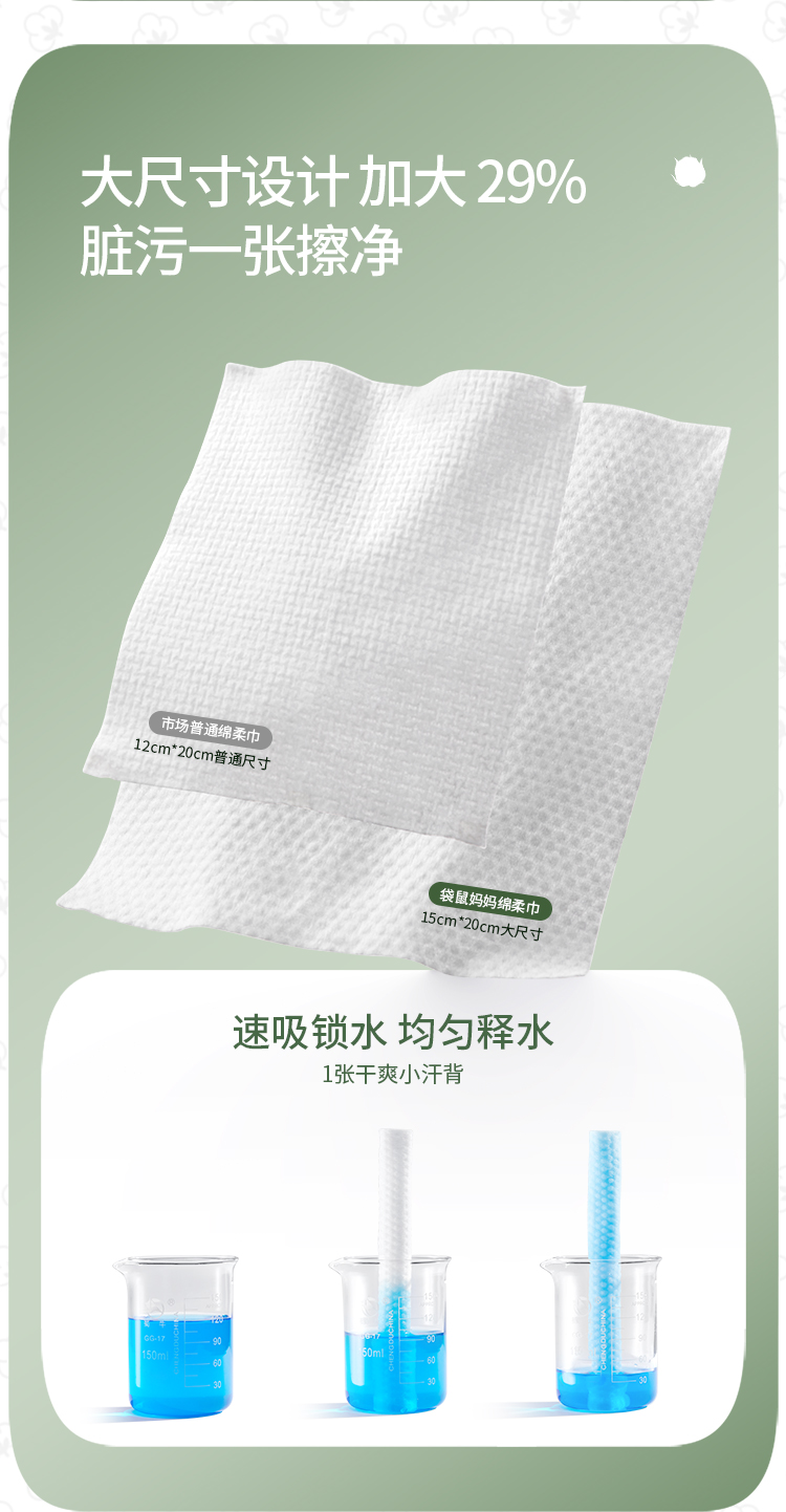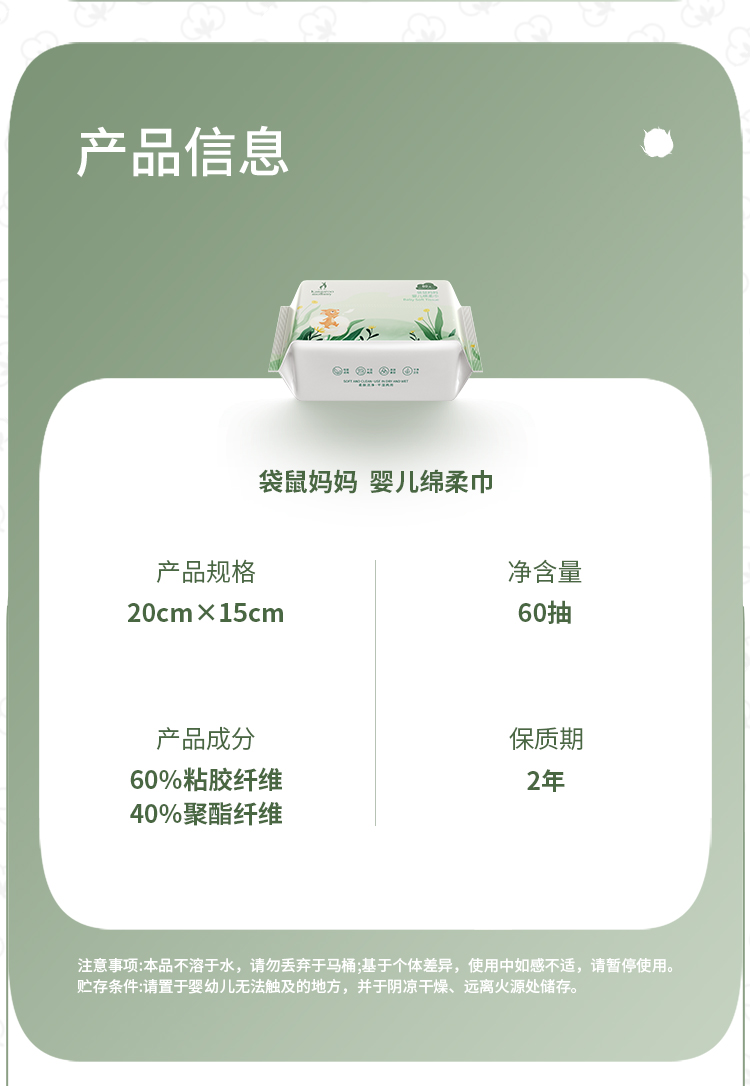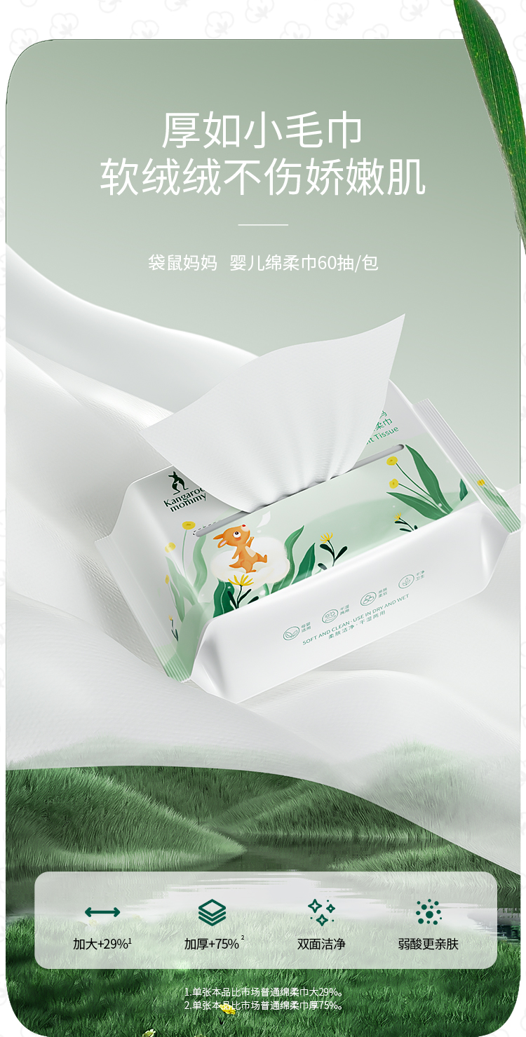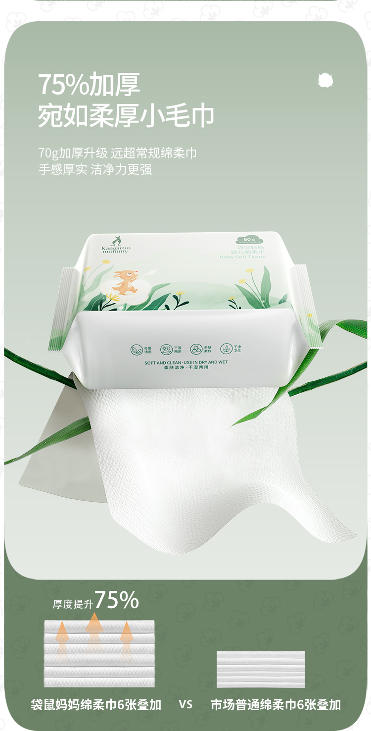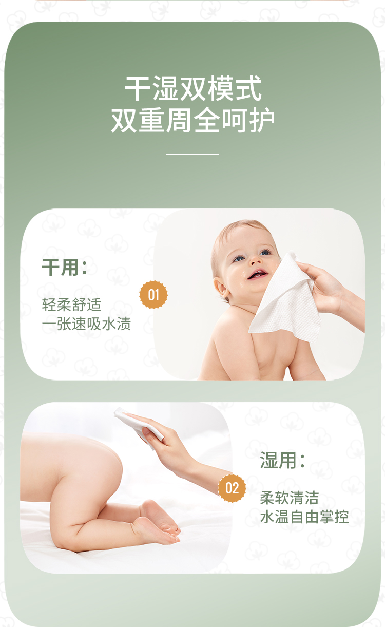 【洗脸巾】厚如小毛巾 干湿两用不掉絮 婴儿绵柔巾(60抽)