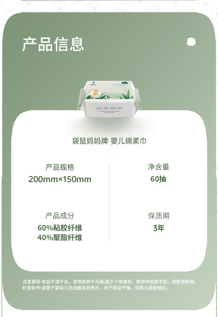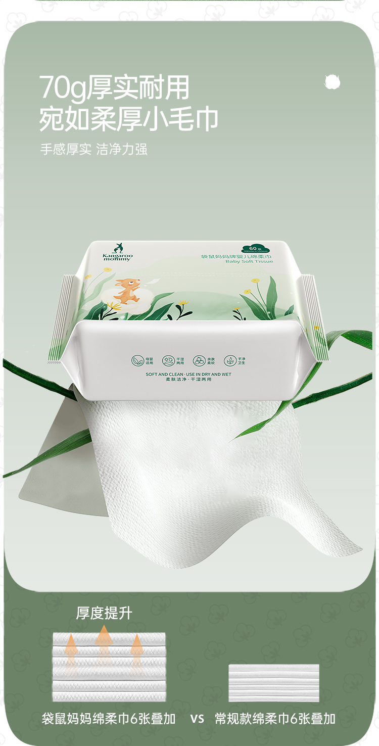 【婴儿绵柔巾60抽】厚如小毛巾 干湿两用婴儿绵柔巾(60抽)