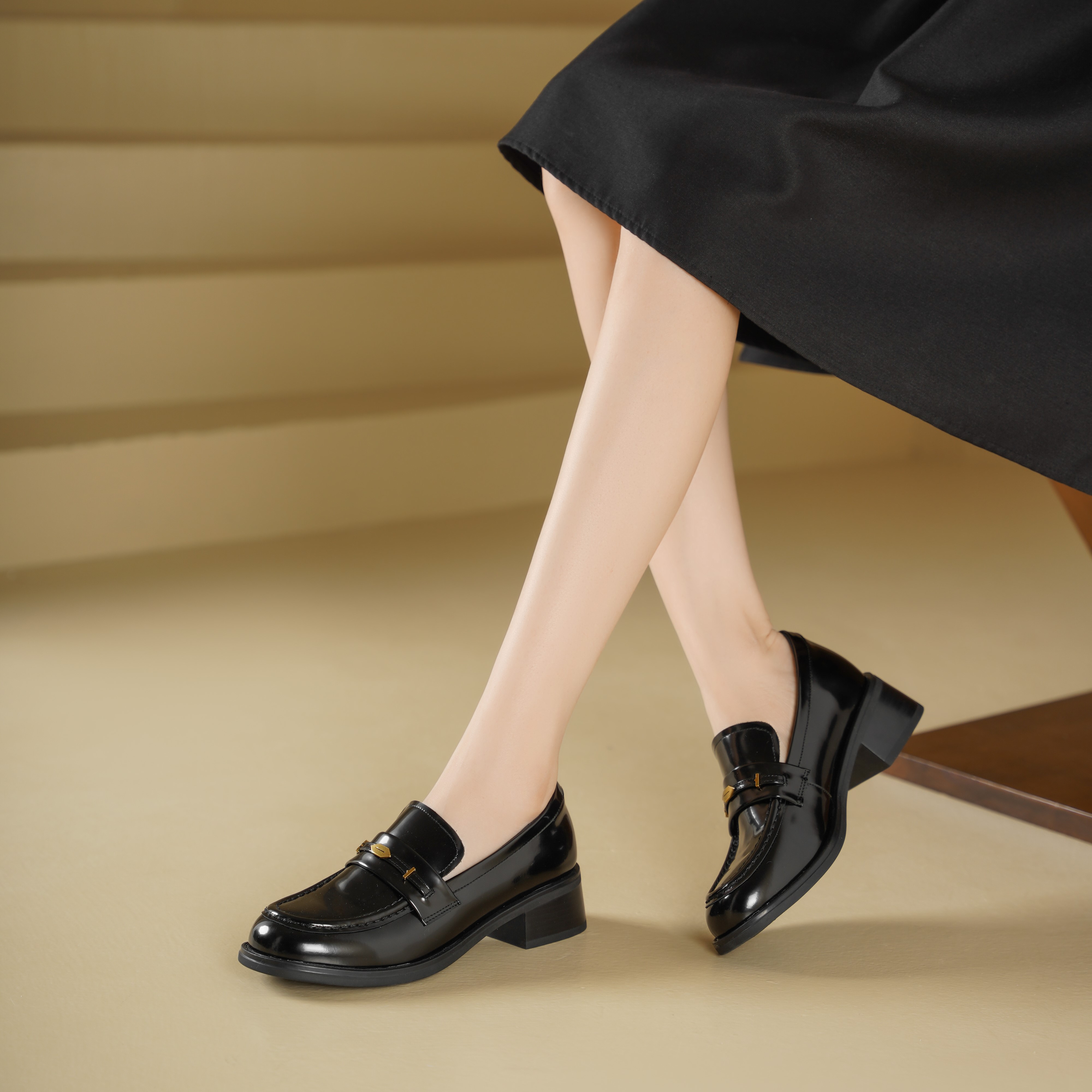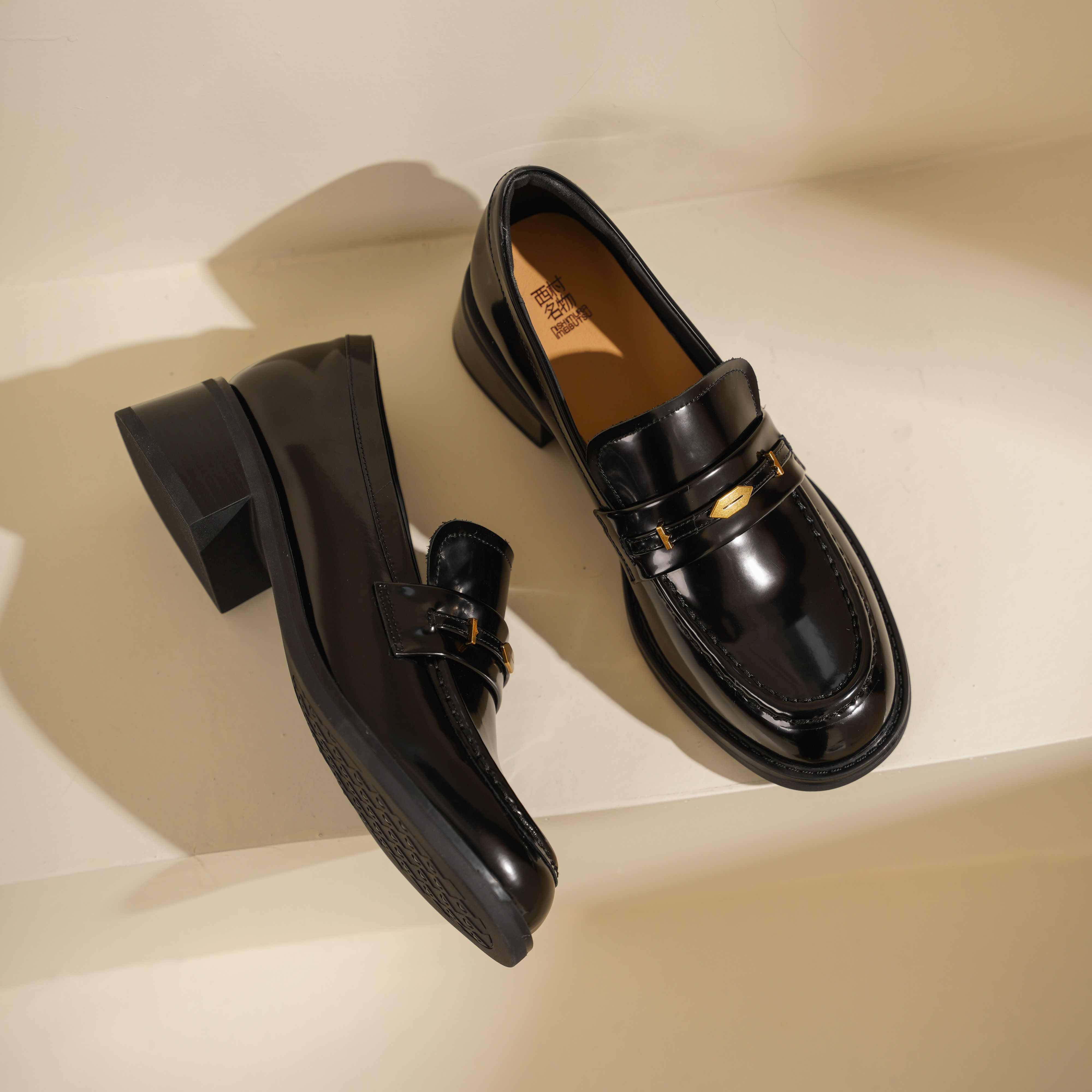 【秋季新款】西村名物2025年秋季新款小圆通头舒软粗跟防滑低跟深口单鞋乐福鞋T25CM38861