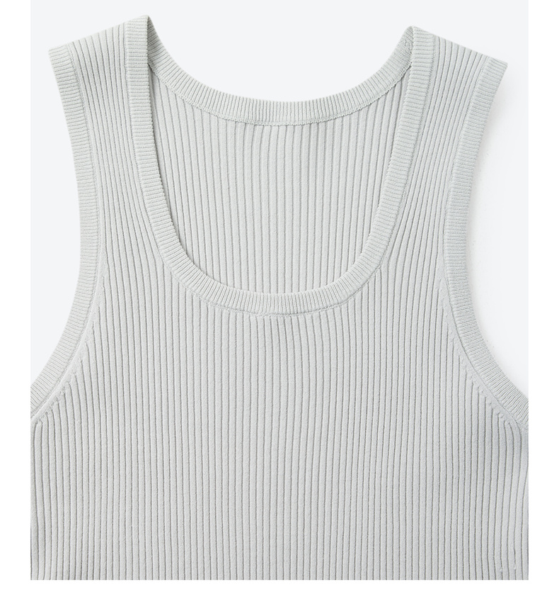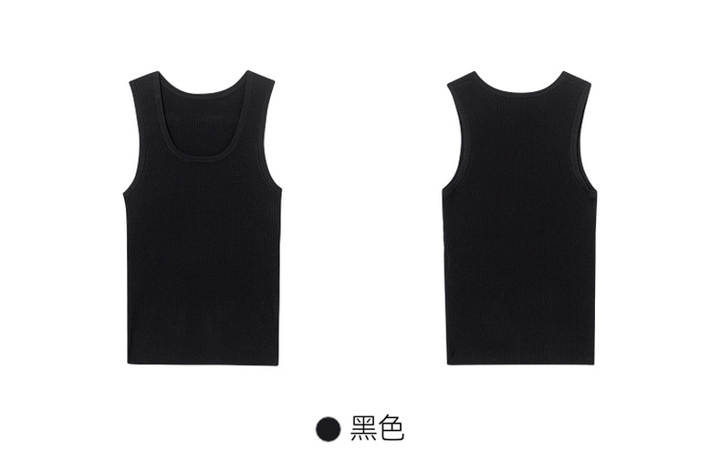 【严选】诗凡黎U领纯色针织背心2024秋新款简约气质黑色无袖套头内搭上衣SF7131441