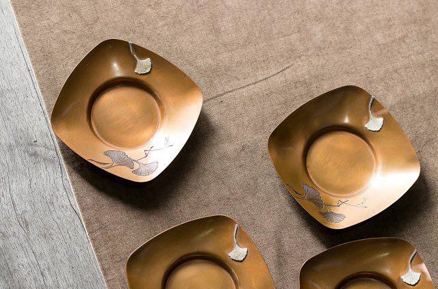 银杏叶雕刻方托