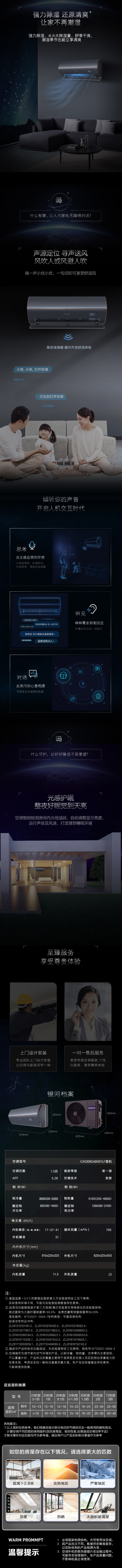 卡萨帝 空调 CAS358GAB(81)U1 1.5匹 变频 一级能效 壁挂式 支持APP控制 冷暖类型 塑料面板 上下/左右扫风 光感自动调节睡眠模式