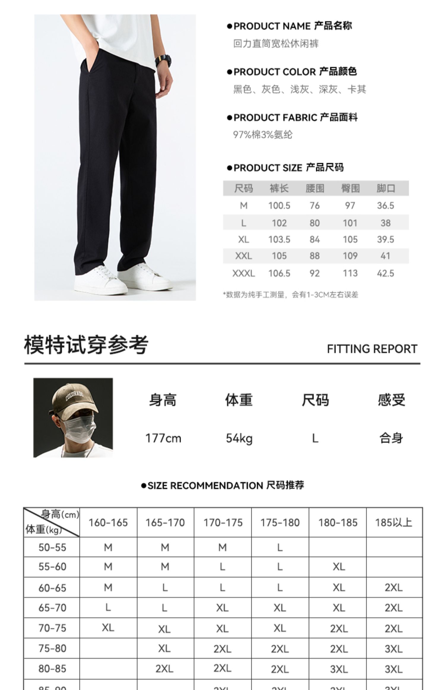回力纯棉休闲裤男2025春夏新款修身百搭弹力裤子韩版通勤直筒长裤