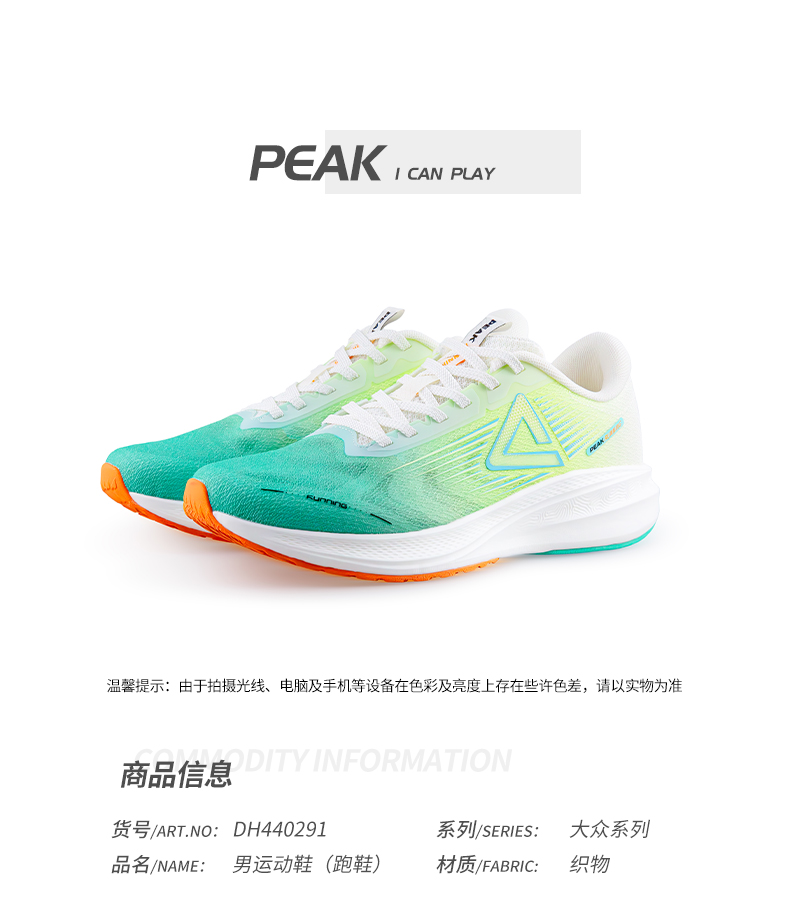 匹克态极缓震跑步男鞋超轻便专业透气训练减震运动鞋超轻体测跑鞋DH440291