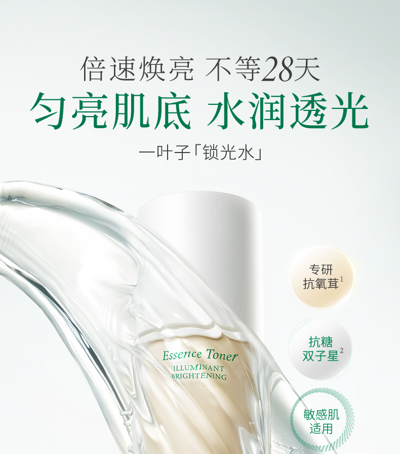 [锁光水]一叶子光蕴焕亮精华水100ml-清透焕亮修护保湿紧致舒缓礼物