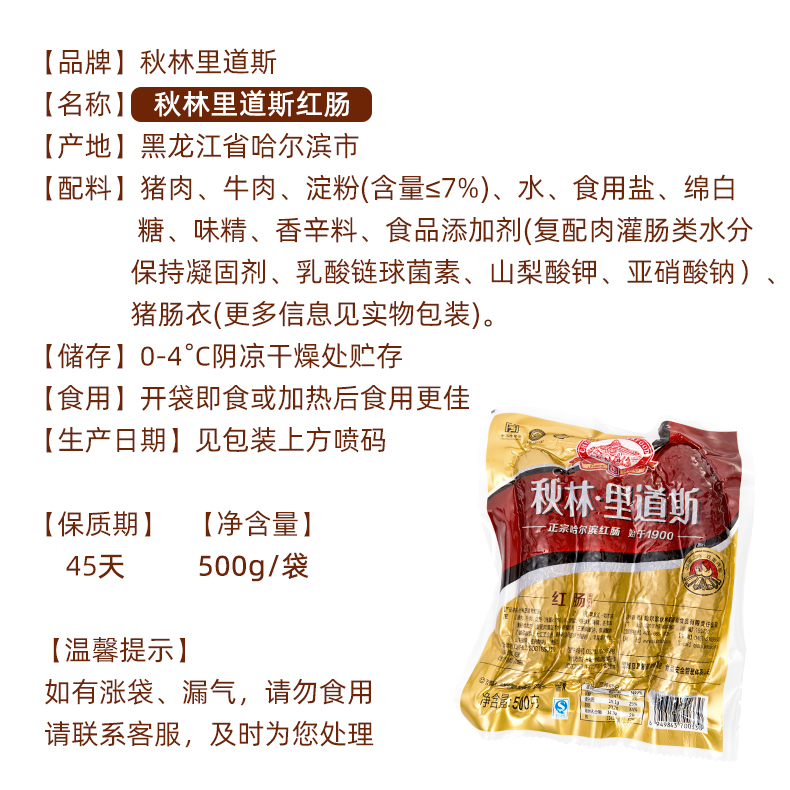 秋林里道斯 哈尔滨红肠年货礼盒4.1kg熟食大礼包【红肠*4袋+儿童肠*4袋+风干肠*2袋】礼盒装 红肠4袋+儿童肠4袋+风干肠2袋(礼盒)