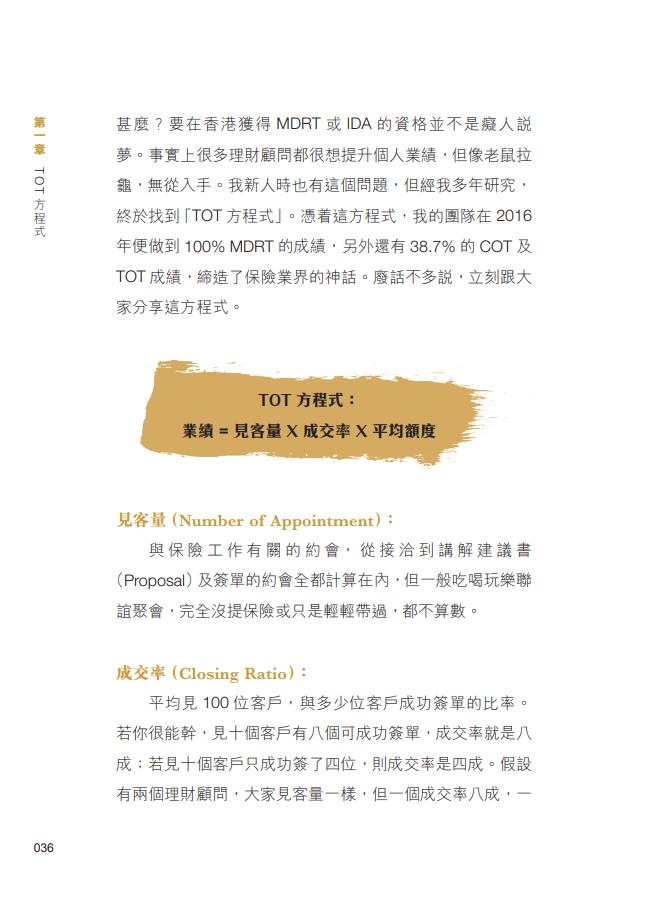 書中分享的心態及逆向思維技巧,並不限於保險銷售,亦適用於一般服務性行業,包括前線銷售、市場推廣、地產經紀、專業顧問等等……