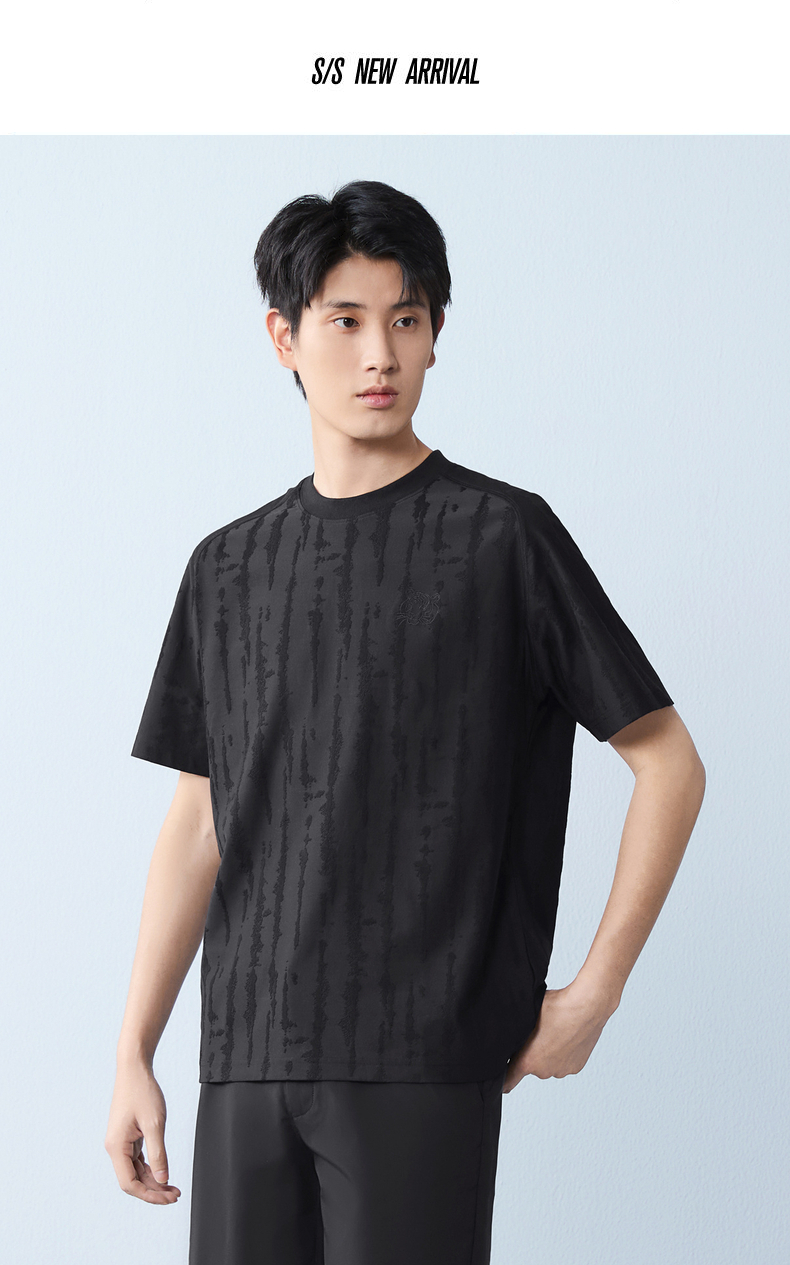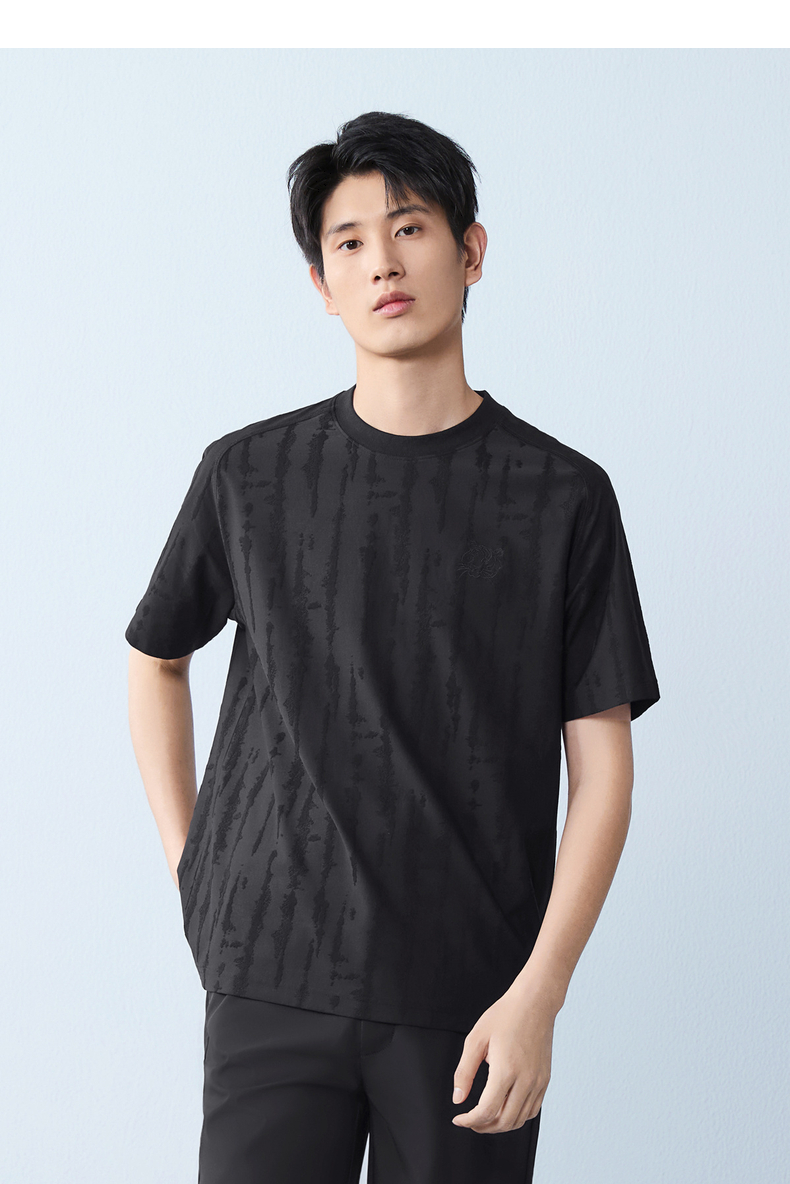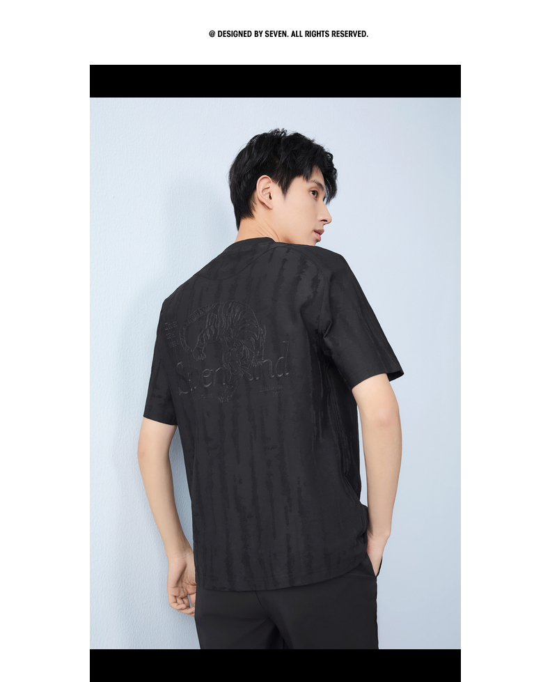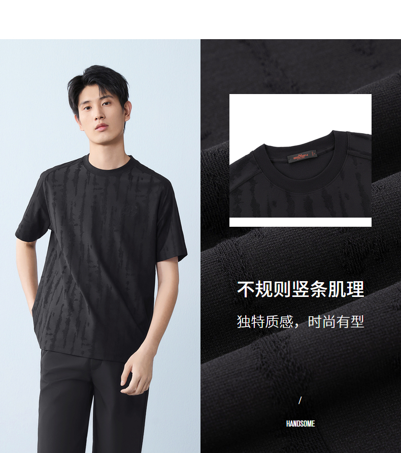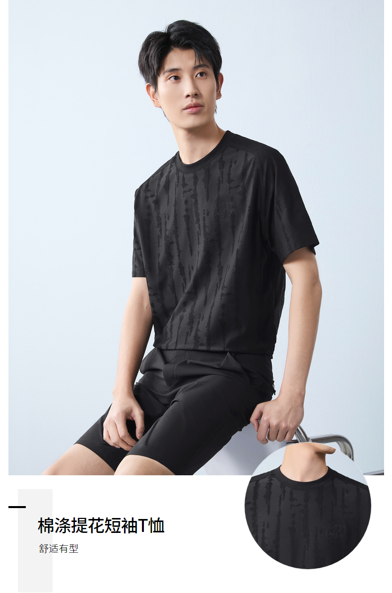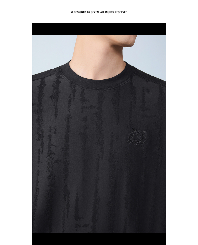 【老虎图案】柒牌短袖T恤2026夏季新款圆领棉涤提花肌理休闲上衣 130T71680
