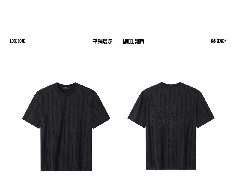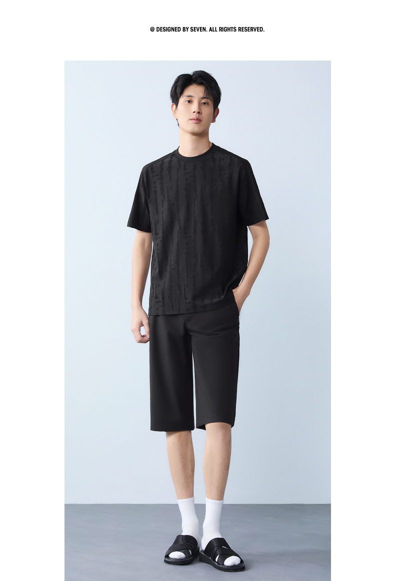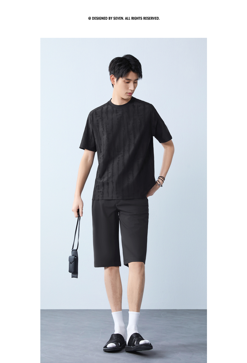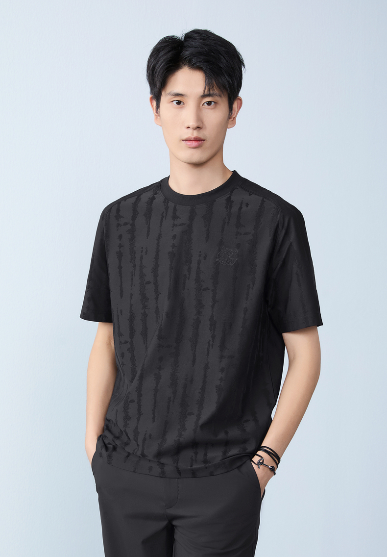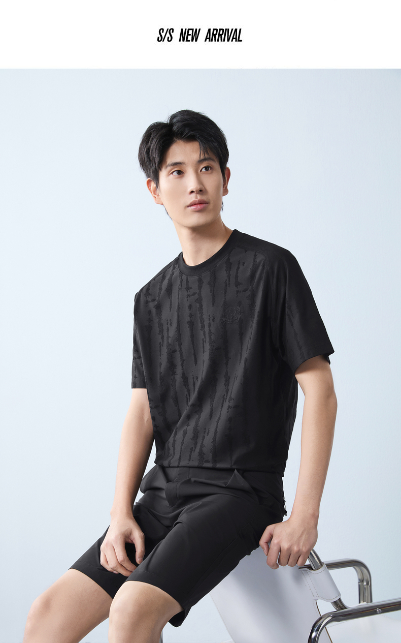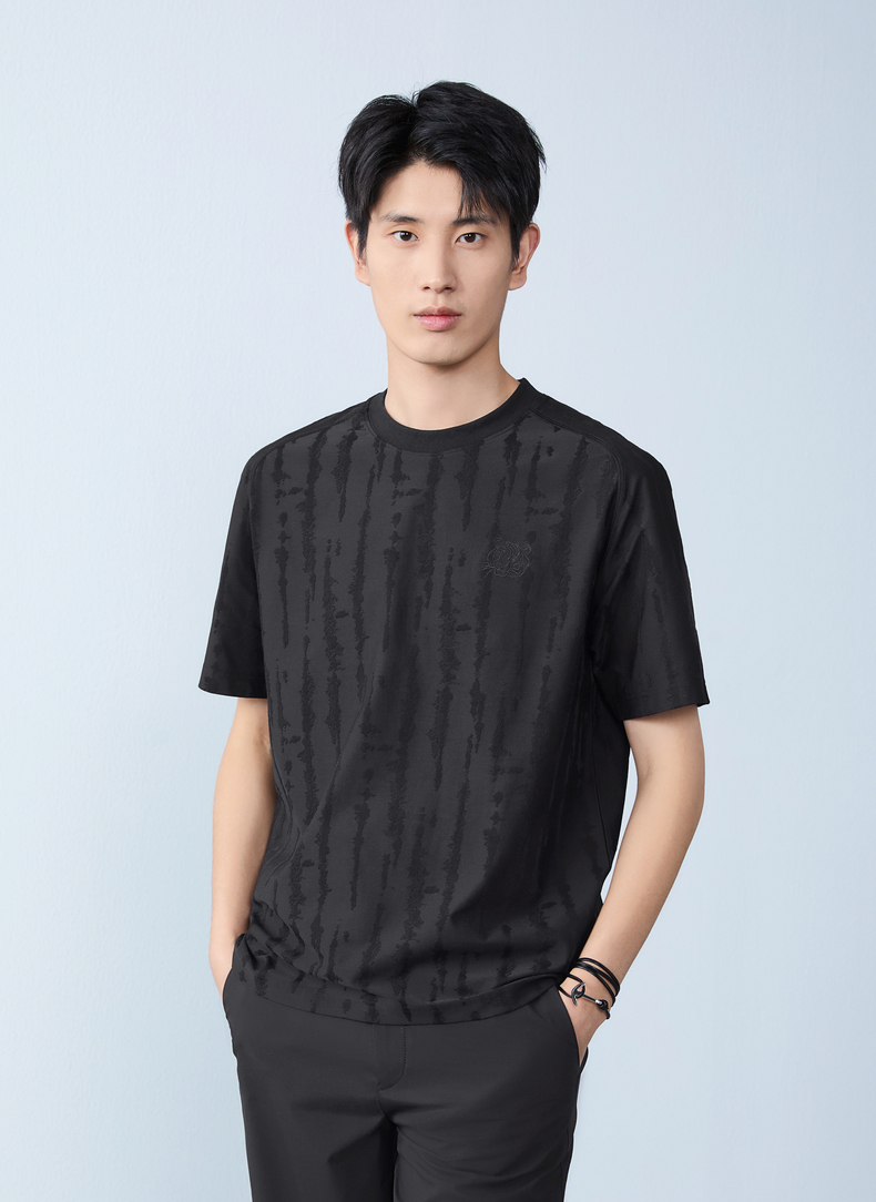 【老虎图案】柒牌短袖T恤2026夏季新款圆领棉涤提花肌理休闲上衣 130T71680
