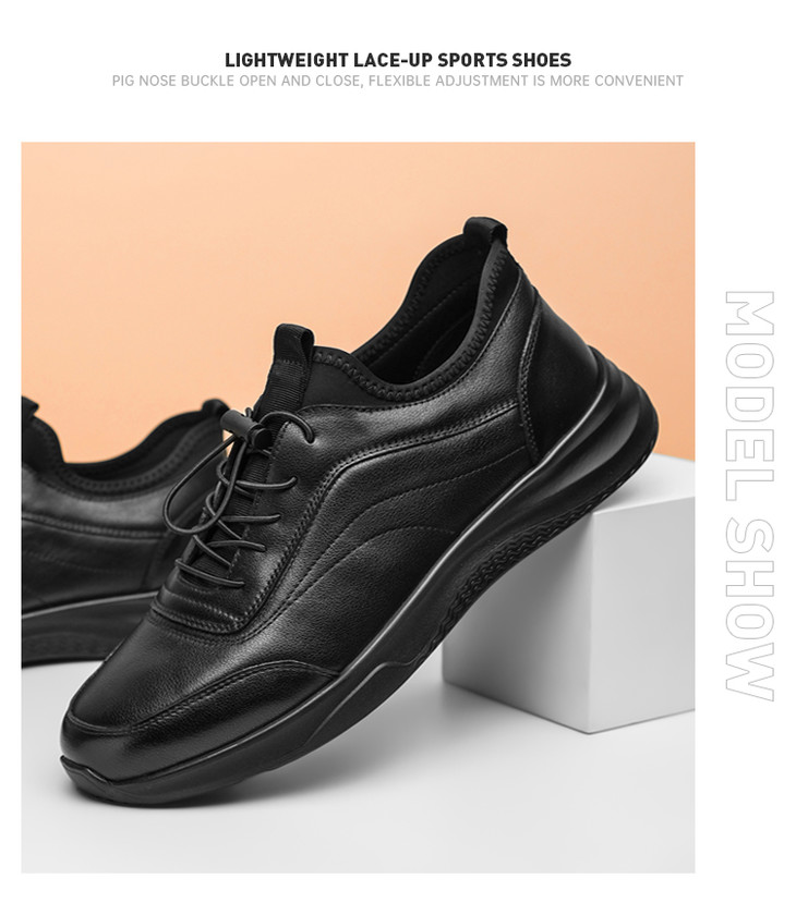 【实付满399送保温杯】【轻便免系带运动皮鞋】 快速穿脱牛皮皮鞋休闲运动低帮鞋