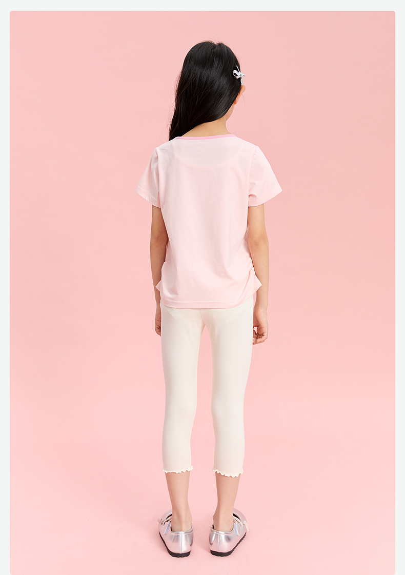 笛莎Deesha 童装女童T恤女童夏季撞色收腰图案T恤