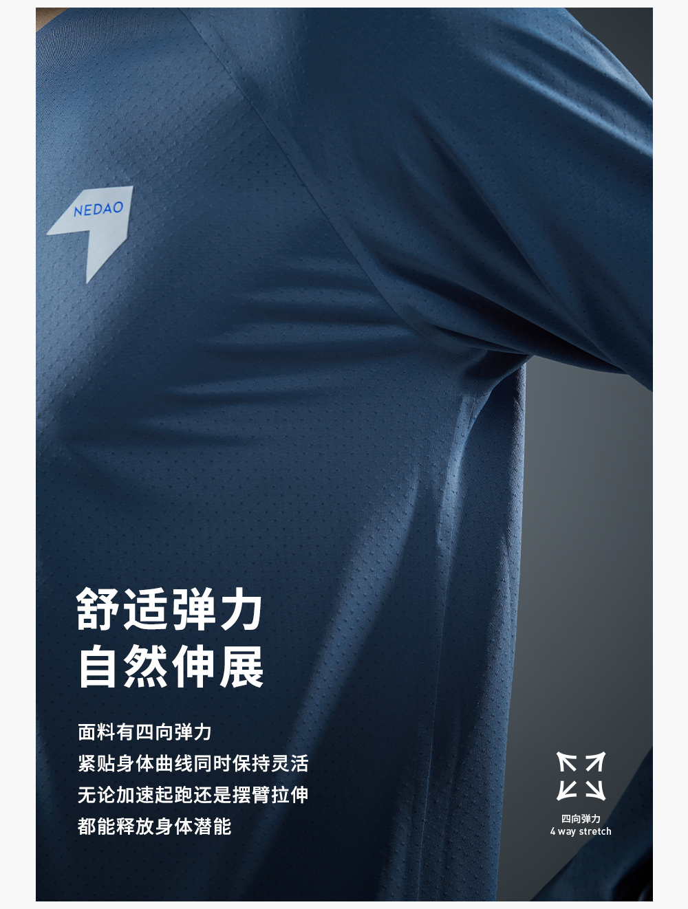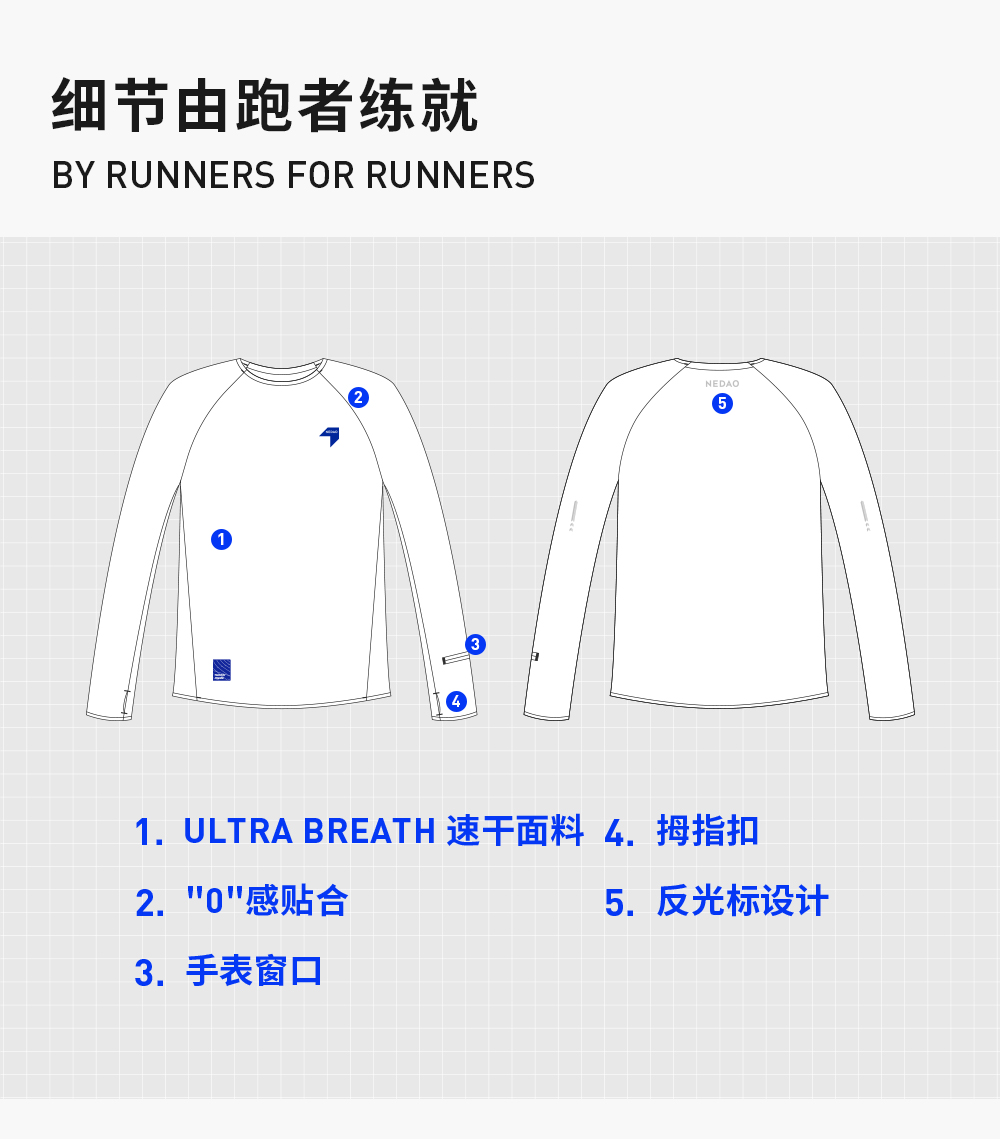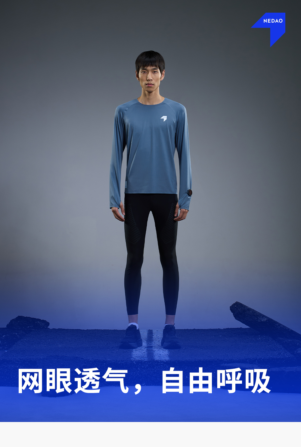 NEDAO内道新品美利奴羊毛圆领印花长袖吸汗保暖男女同款越野跑步运动T