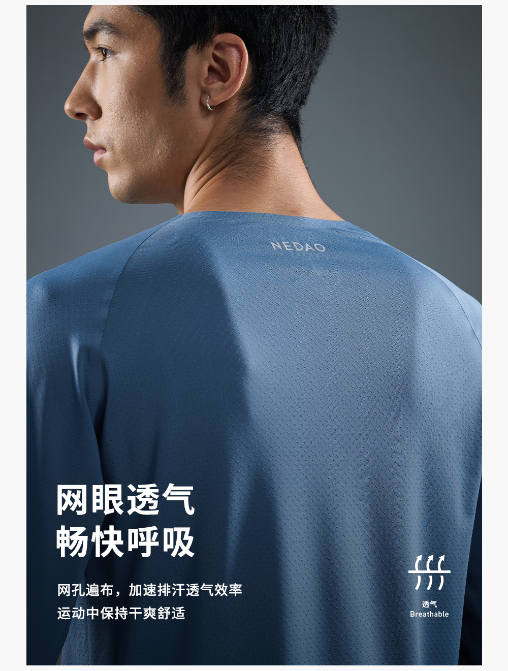 25新款内道网眼跑步长袖男款透气干爽网眼跑步训练运动长袖