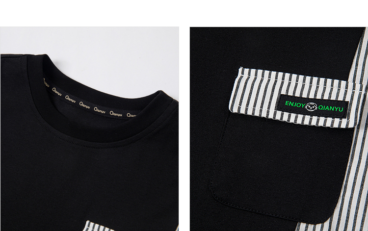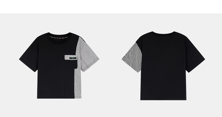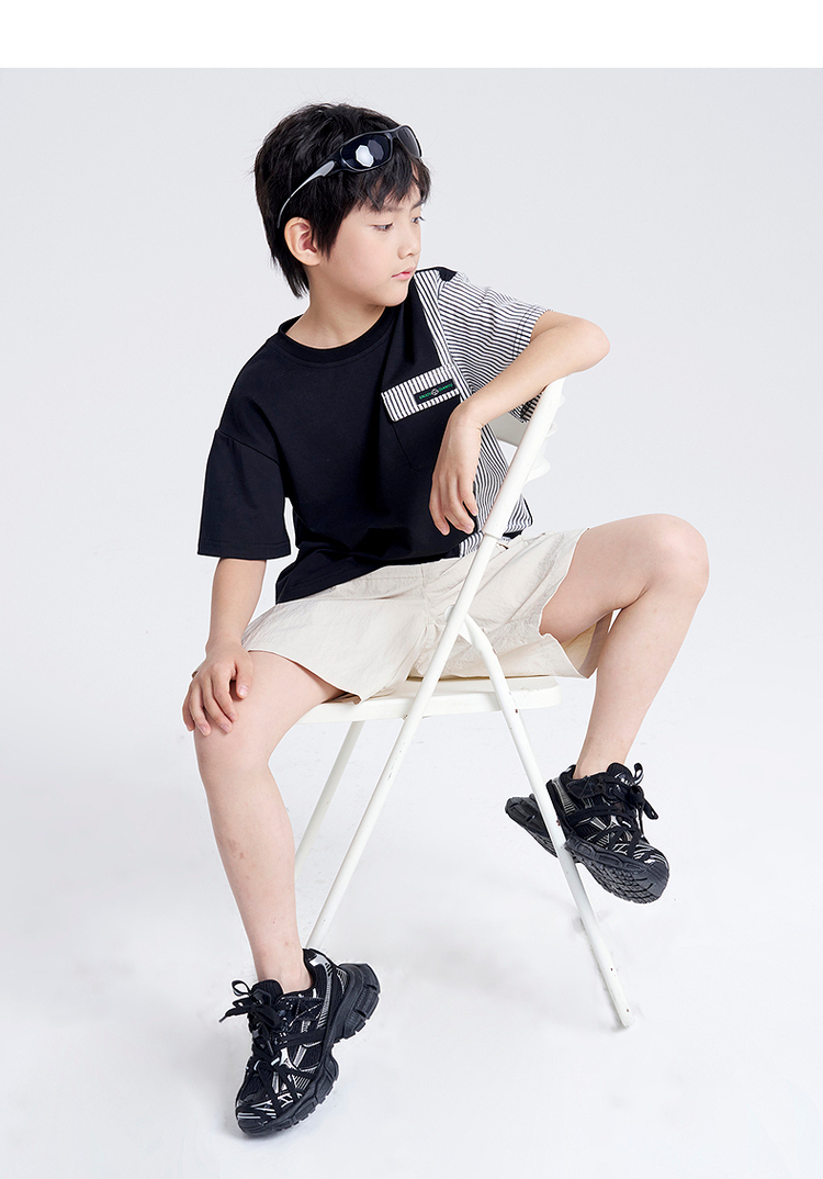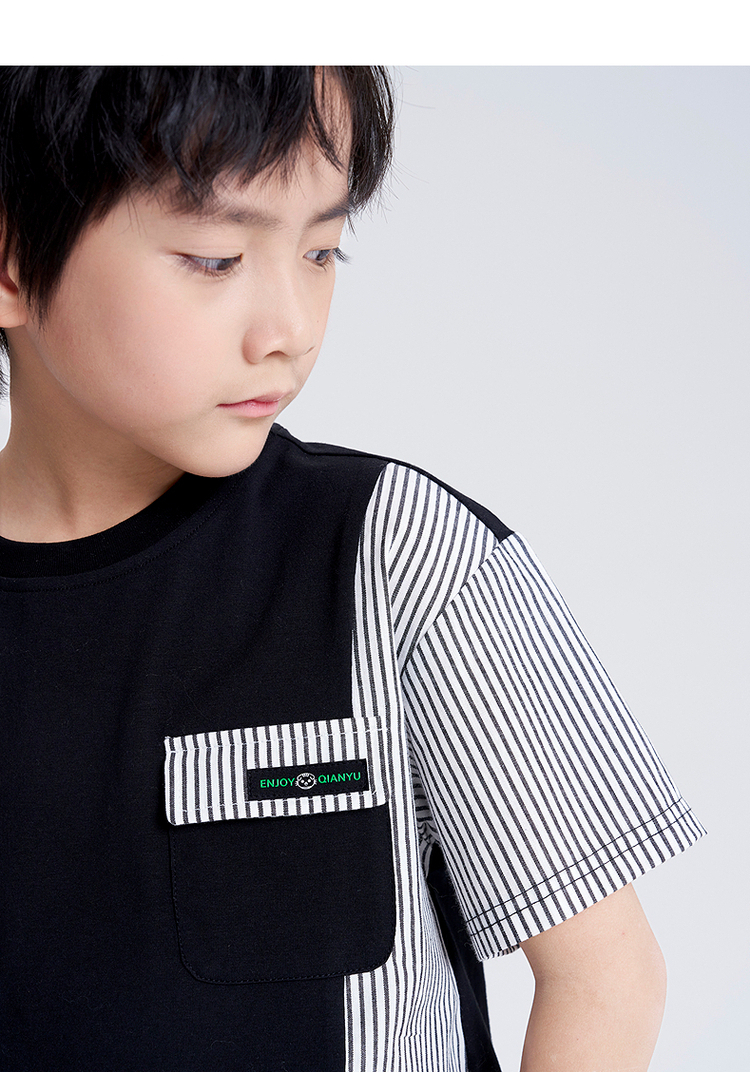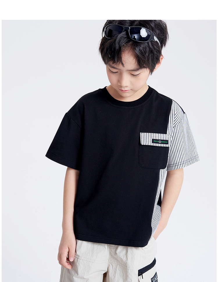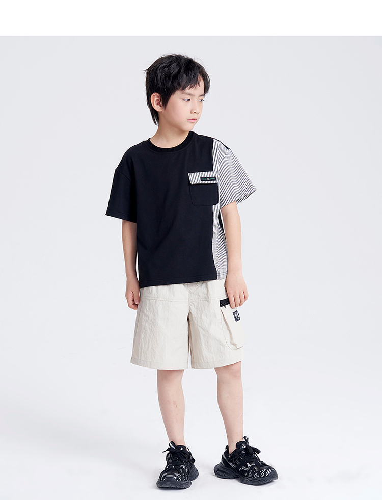 笛莎千与2025夏新款男童时尚撞色拼接短袖T恤