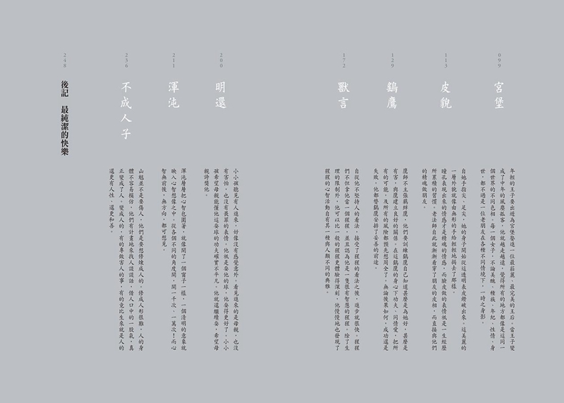 《未央歌》完稿的30年後,鹿橋帶著幾十年的人生感悟和思想淬煉,創作13則看似互不相關、卻又緊密相連的短篇故事,隱含多重探問。從「汪洋」啟航,並在「渾沌」代表著所有故事的結束,也在此開啟無限的可能。最後講一則鄉野傳奇反照全書作結,編織成有滋有味的「人間」。