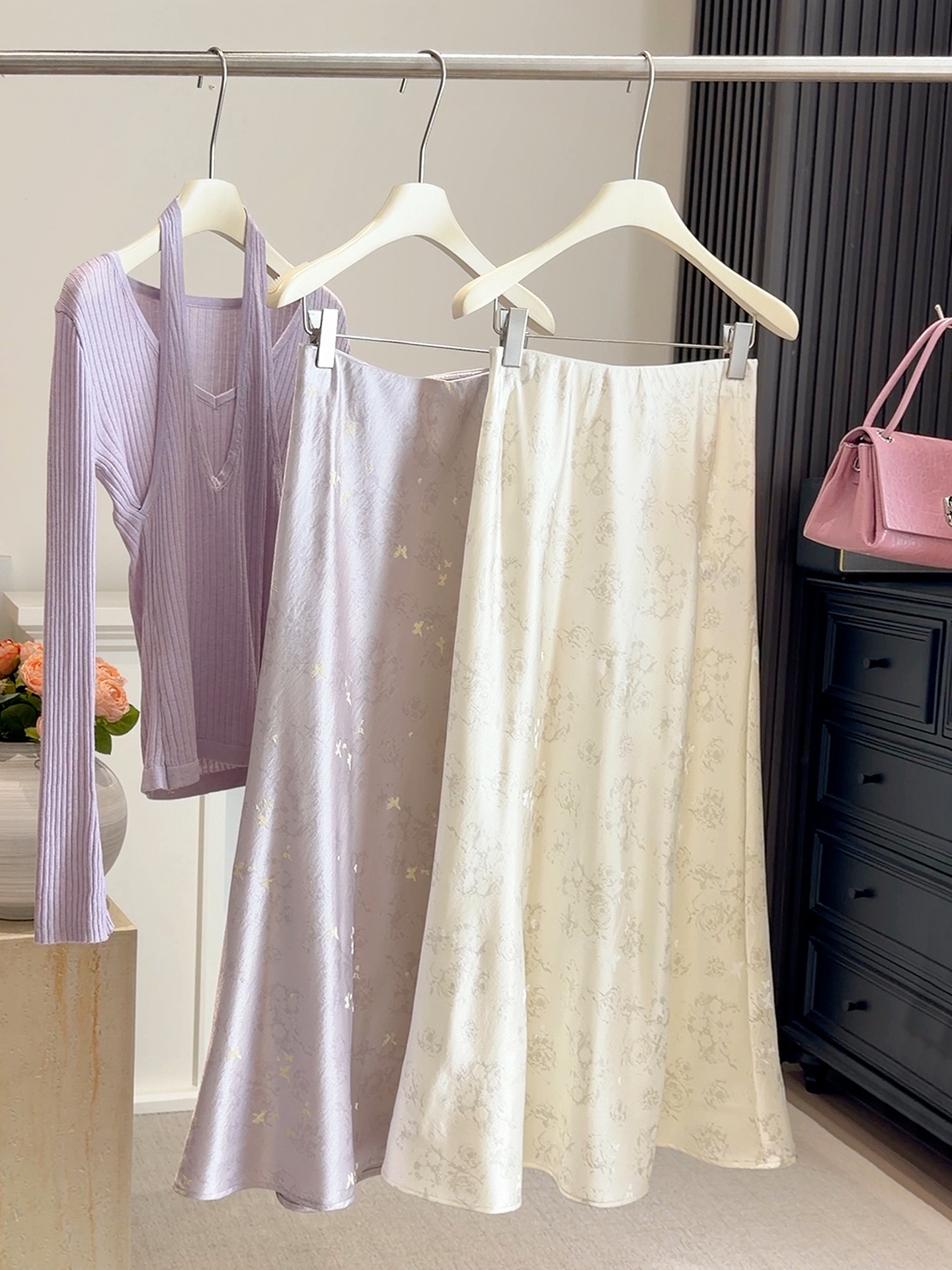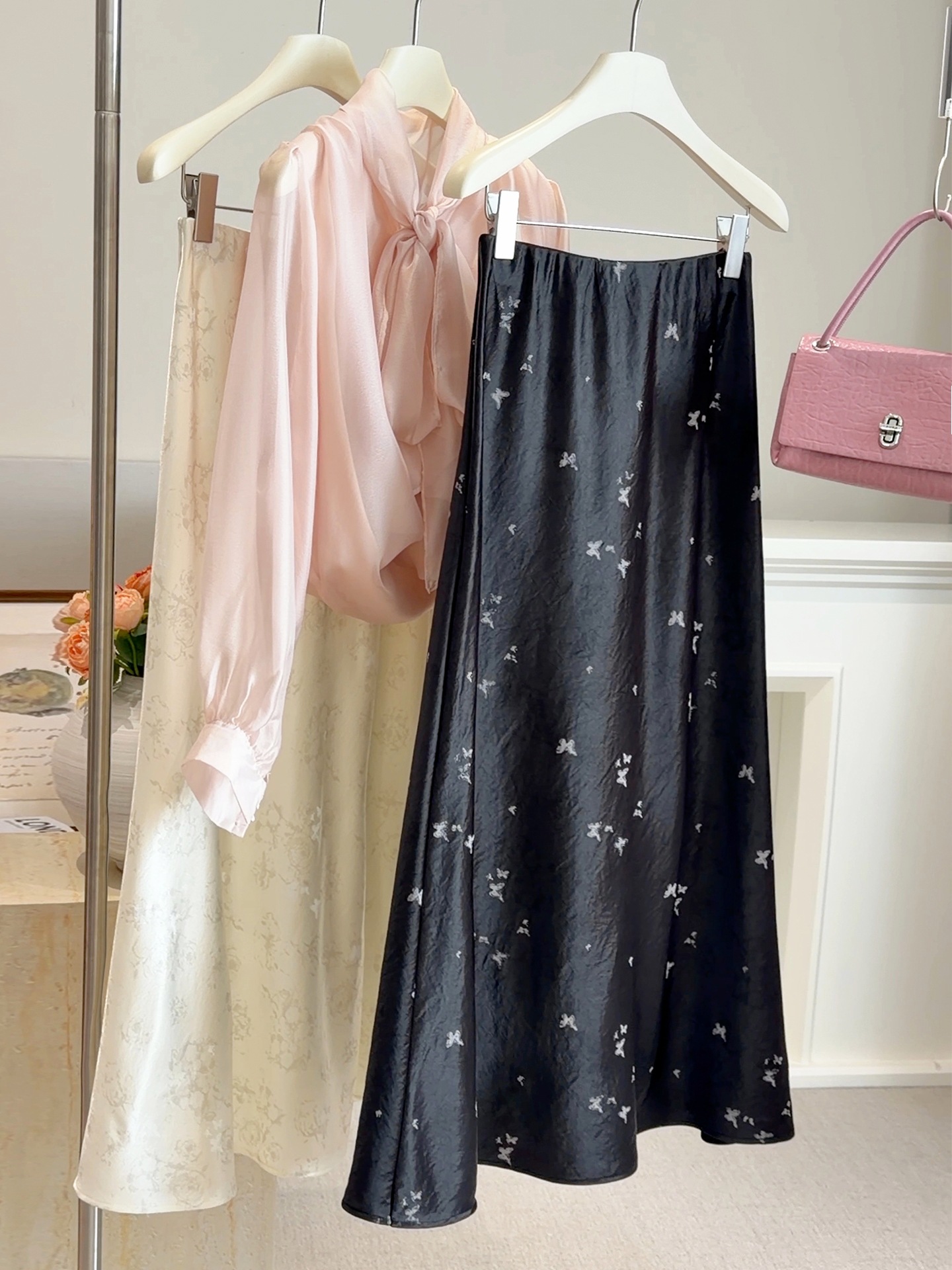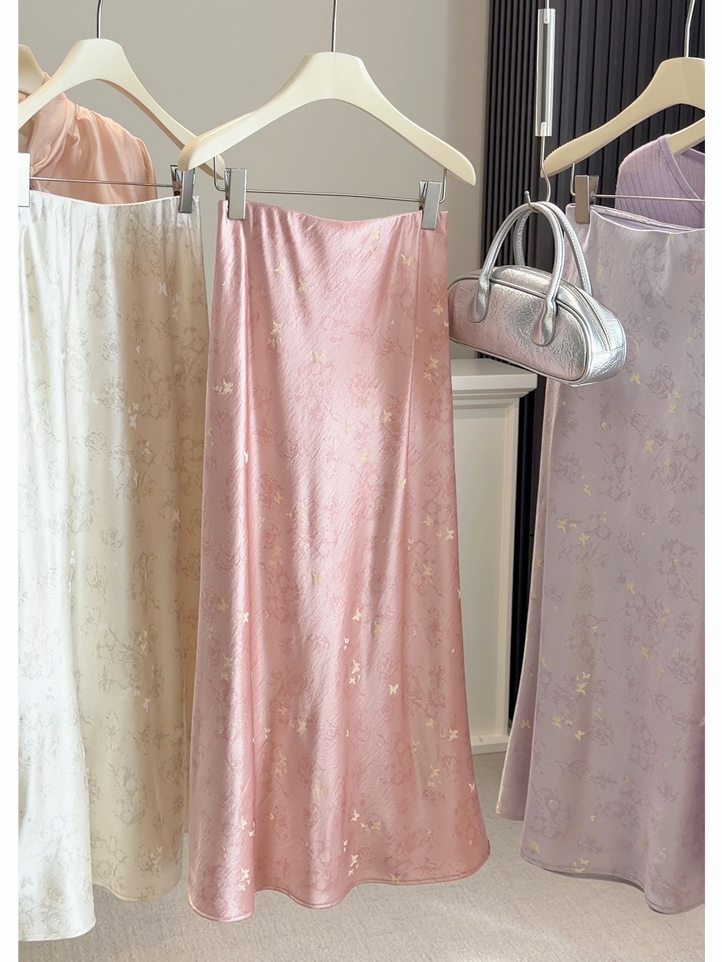 新中式半身裙【国风缎面醋酸裙】复古高腰 显瘦a字蝴蝶提花垂感鱼尾裙