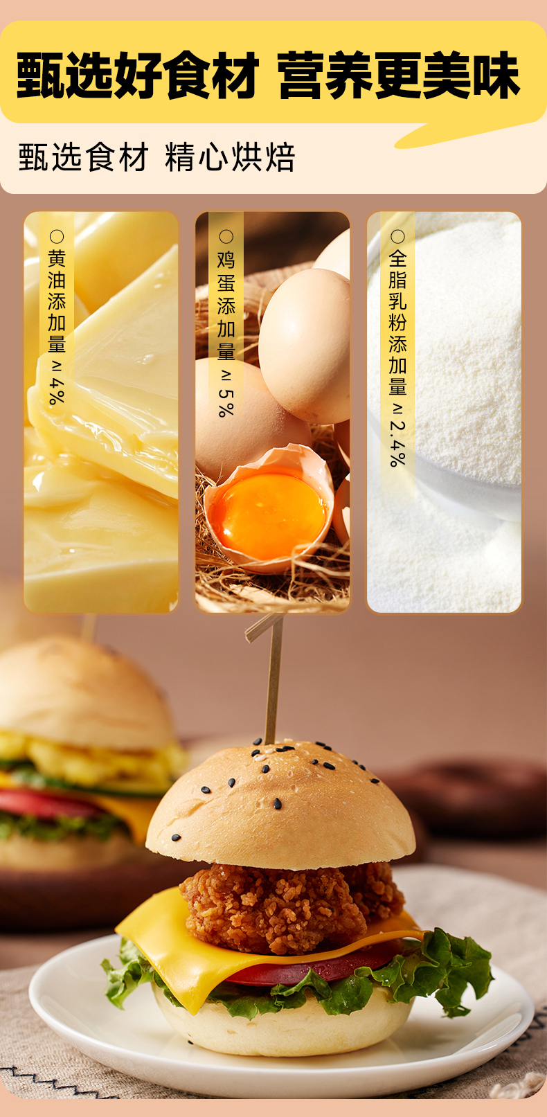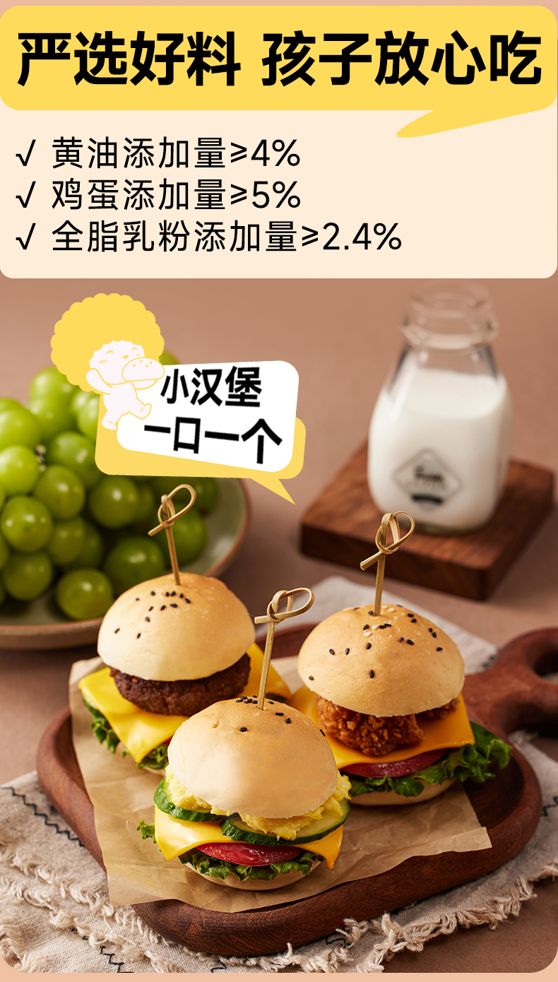 【品名】面包新语黄油小面包DIY儿童早餐健康小汉堡300g*2箱(共20包)