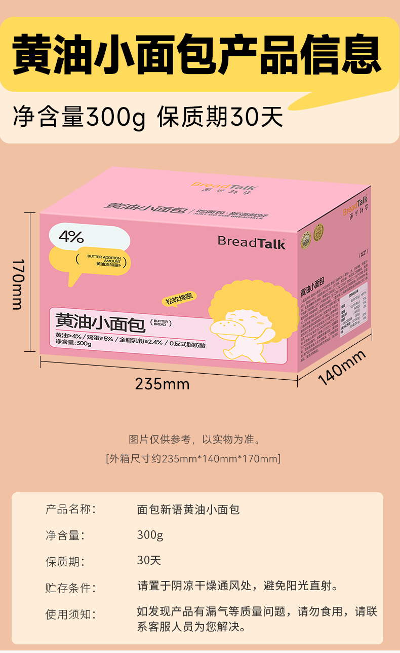 【醒粉福利21.9元2箱】【面包新语】黄油小面包 300g*2箱(共20包)