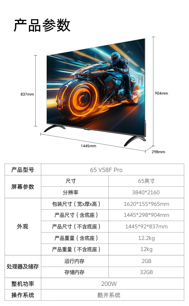 创维(Skyworth)65寸 节能护眼电视 三重健康护眼 一级能效 2GB+32GB Al秒懂语音 G画质引擎 65V58F Pro