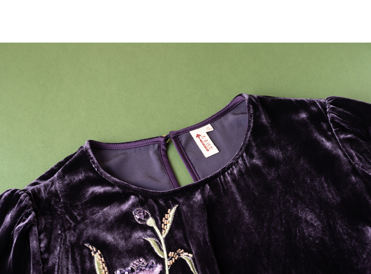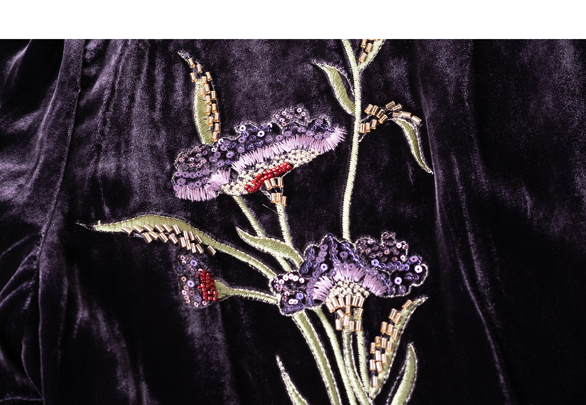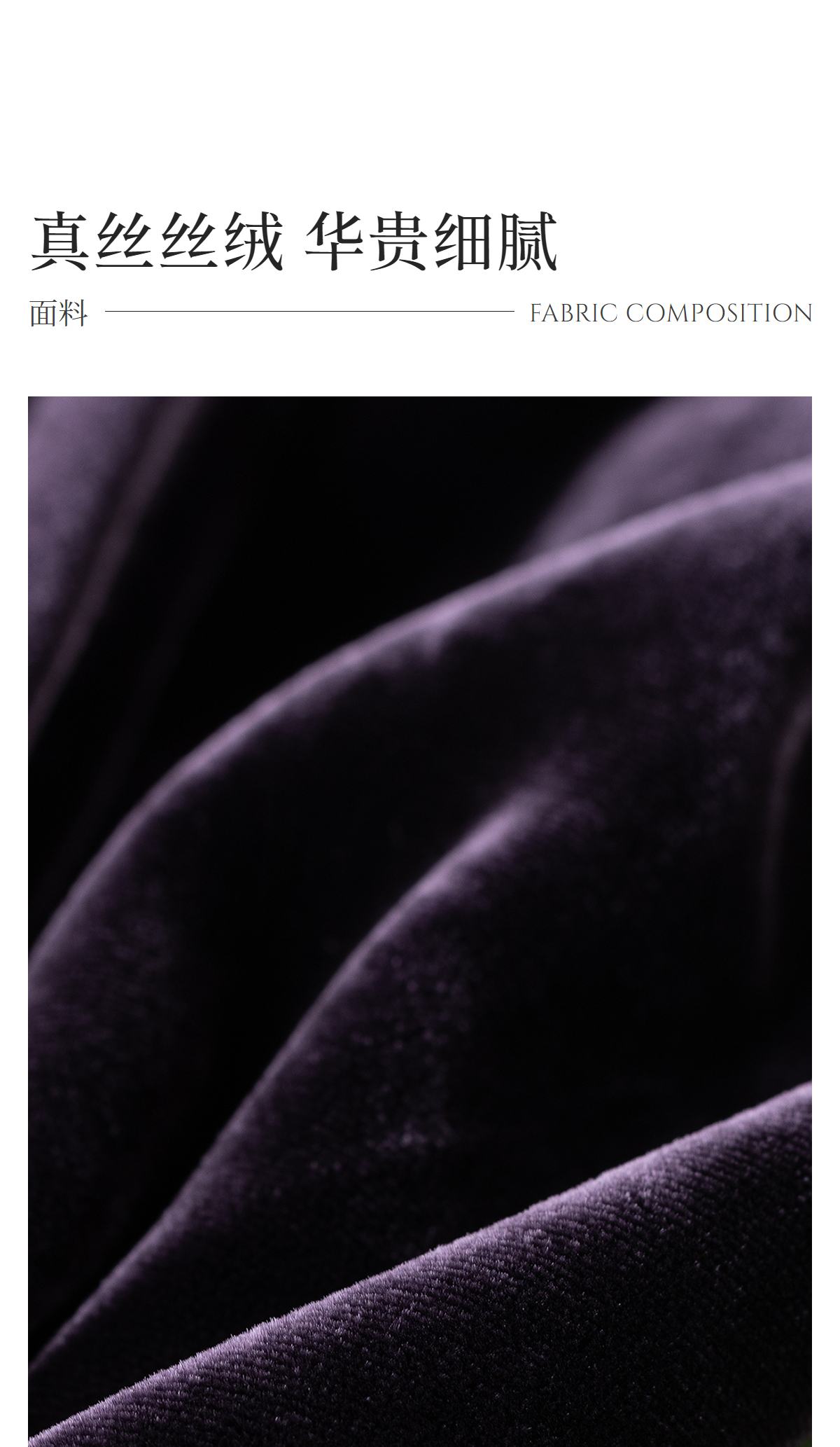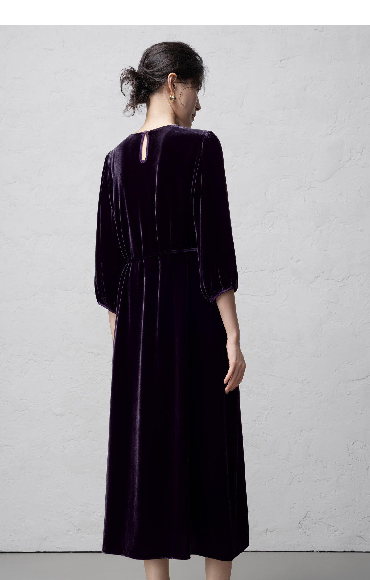 【林栖设计小店】真丝丝绒连衣裙珠片绣花宽松优雅腰带2025秋冬新款长裙女1954190
