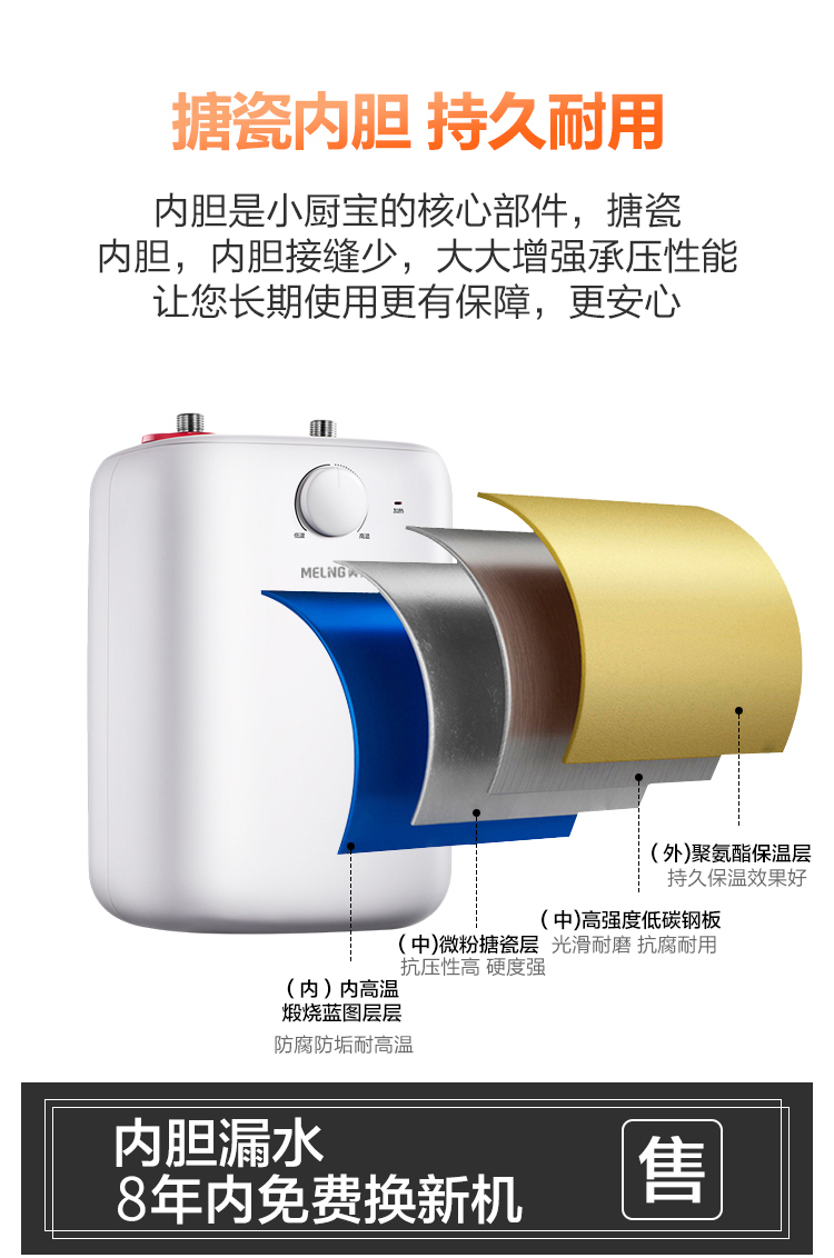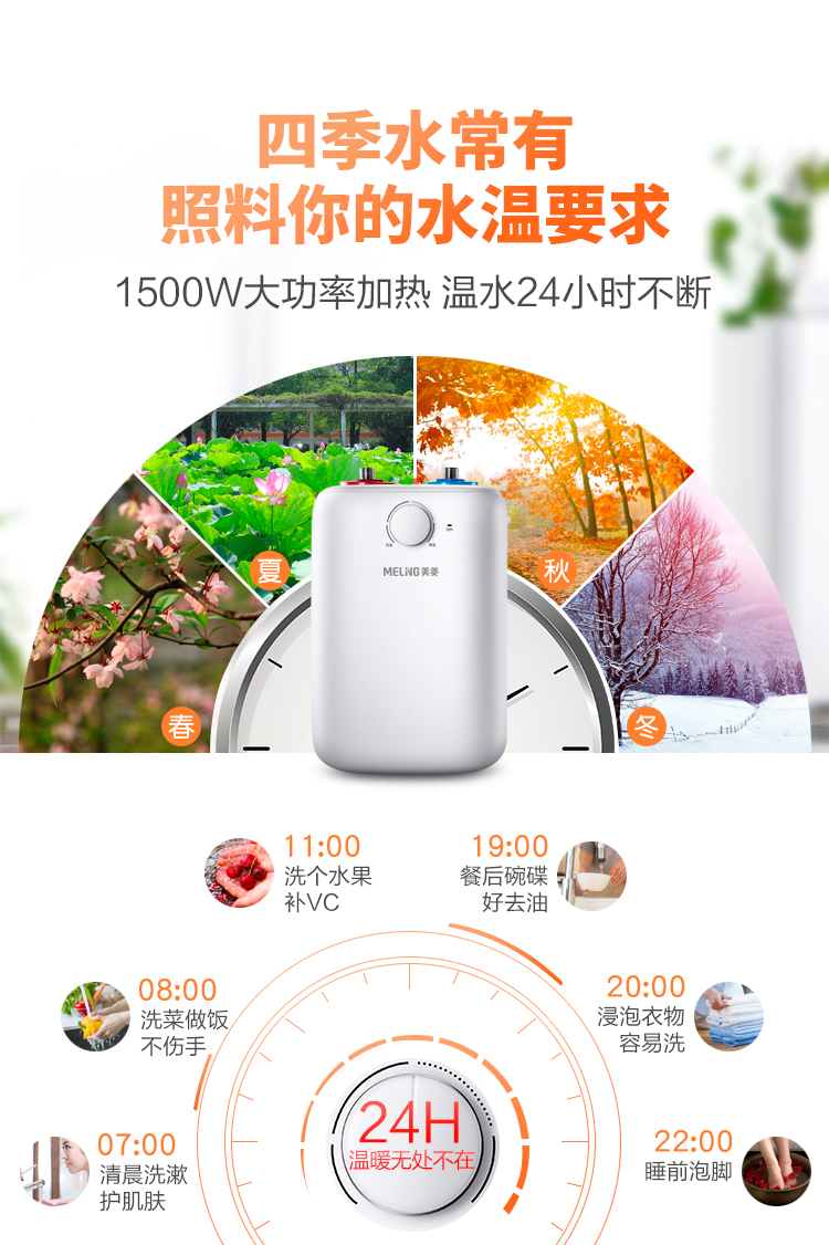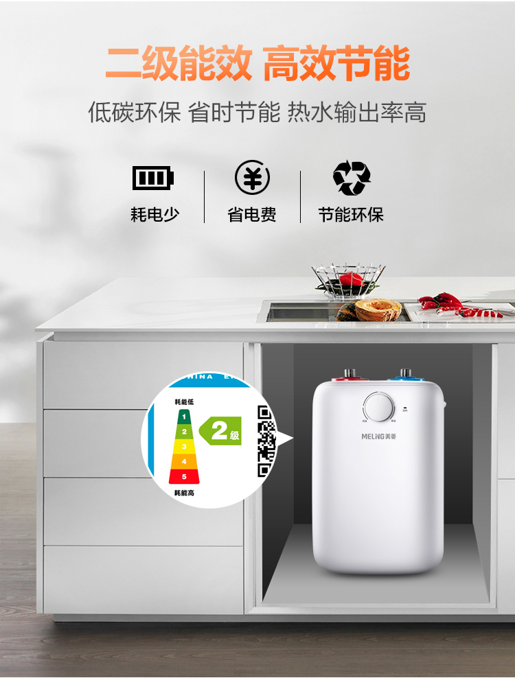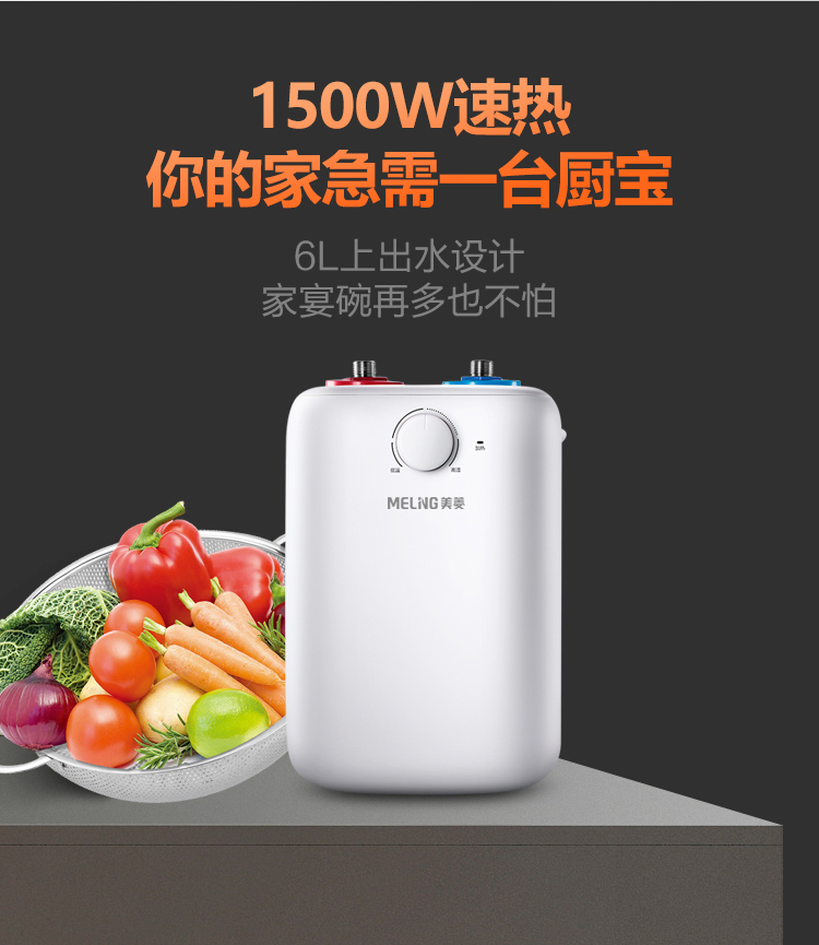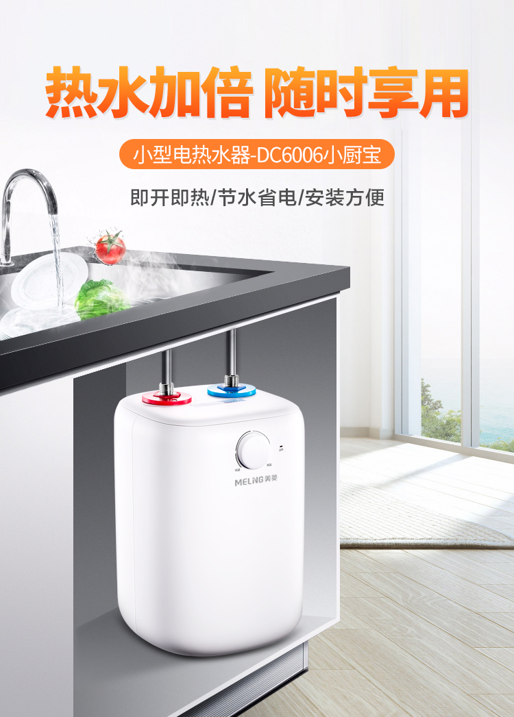 美菱(MELING) 上出水 家用小厨宝 1500W 厨房速热电热水器 小巧尺寸 质保8年 二级能效 DC6006