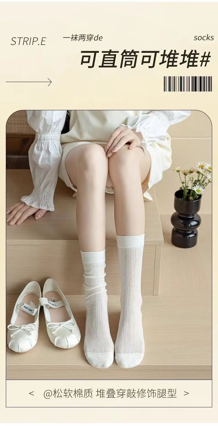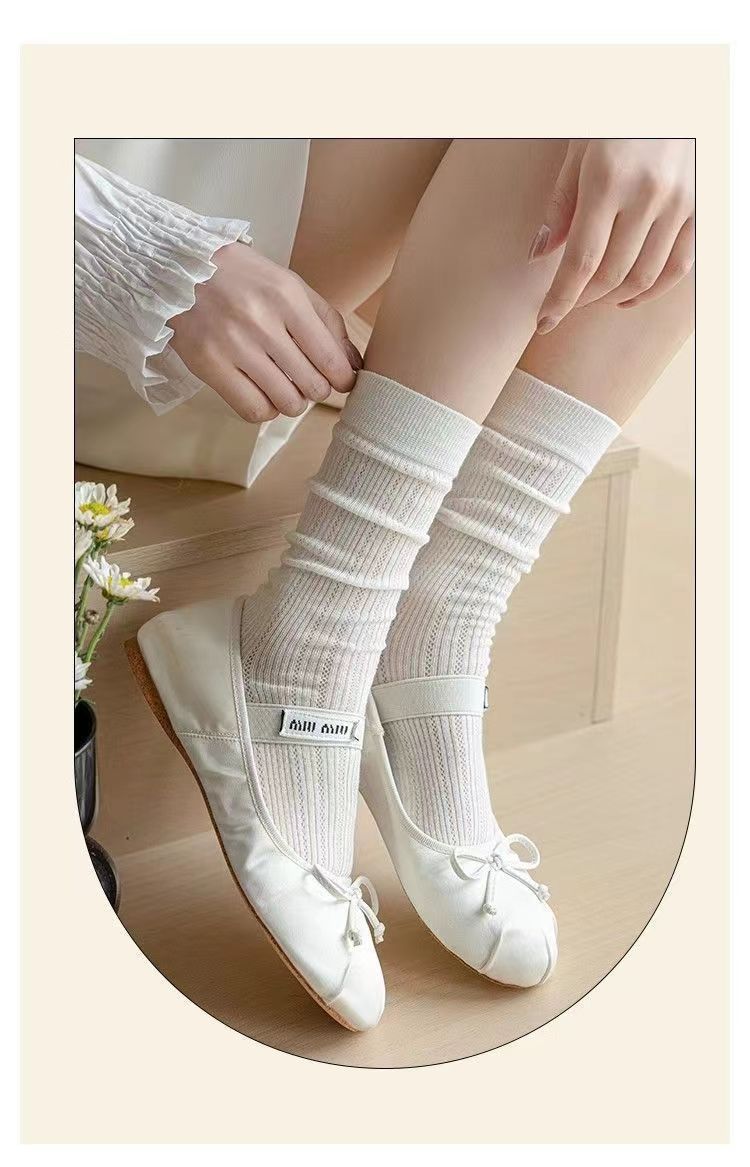【一袜两穿❗可直筒可堆堆】miu芭蕾镂空小腿袜夏季薄款春秋款长筒堆堆袜长网纱灰色袜子。rg