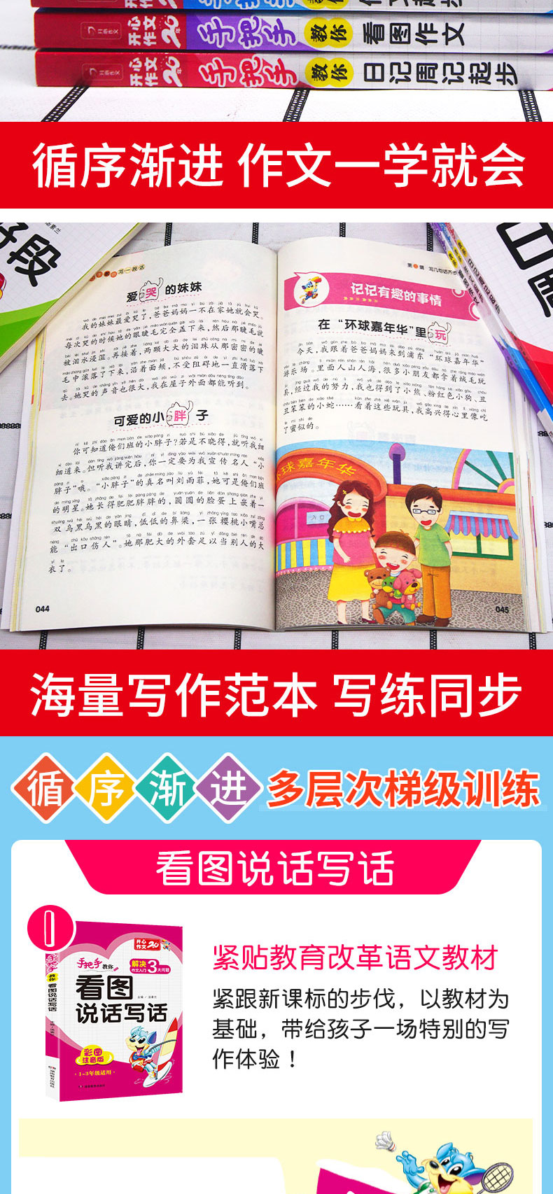 开心作文书大全小学一年级看图说话写话训练二三年级年级好词好句好段日记起步入门天天练范文带拼音课外阅读辅导书人教版通用