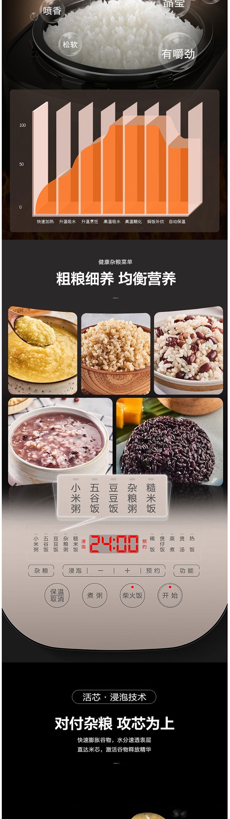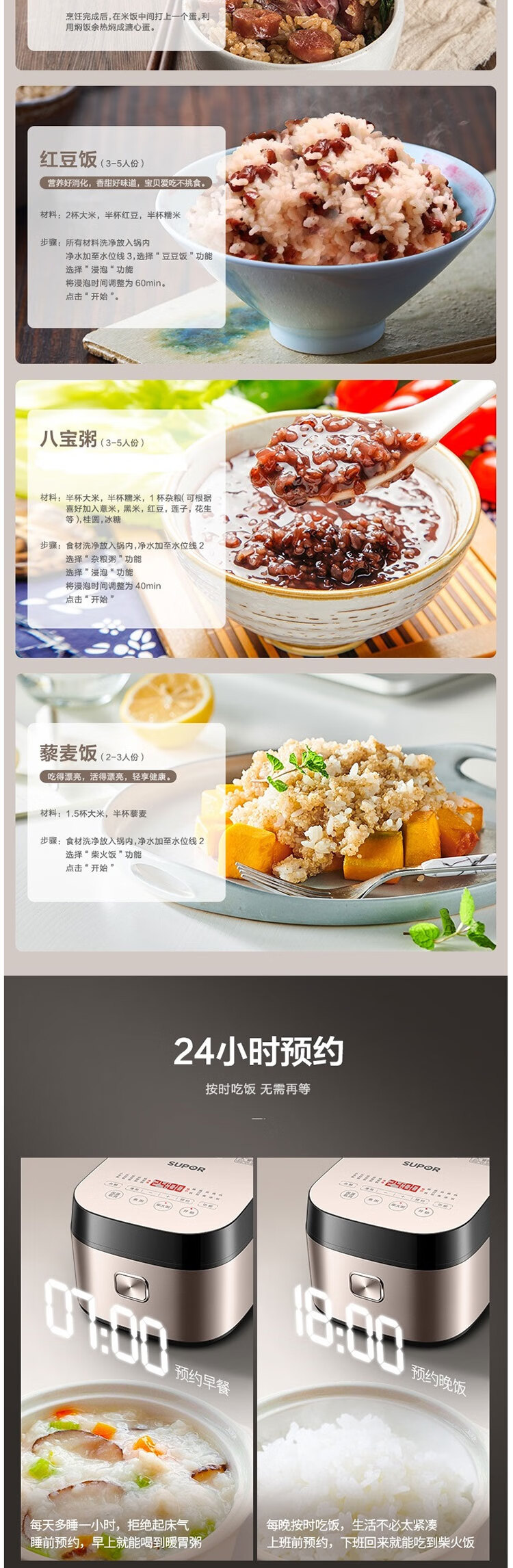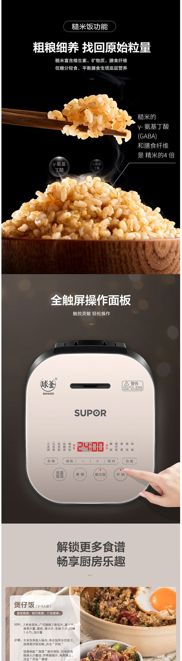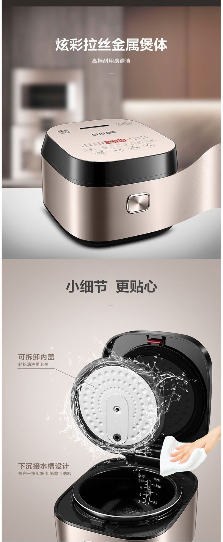 苏泊尔(SUPOR)电饭煲4L球釜内胆2-6人香槟金色纯平触控面板多功能家用智能预约柴 SF40FC77