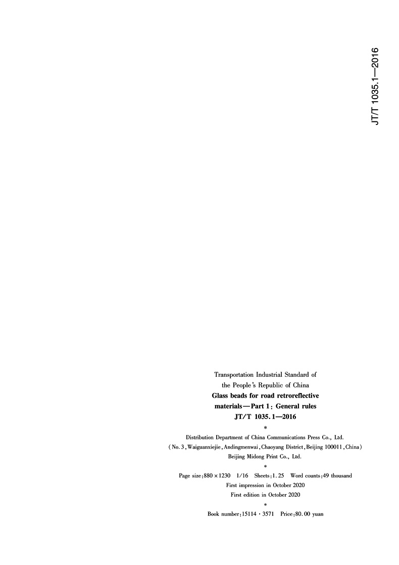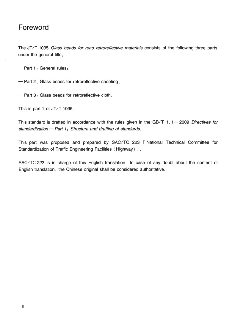 书名:道路逆反射材料用玻璃珠 第1部分:通则(JT/T 1035.1—2016)英文版