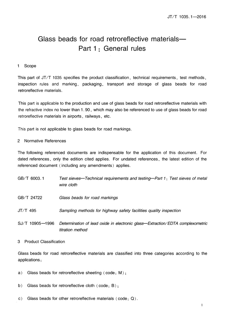 道路逆反射材料用玻璃珠 第1部分:通则(JT/T 1035.1—2016)英文版