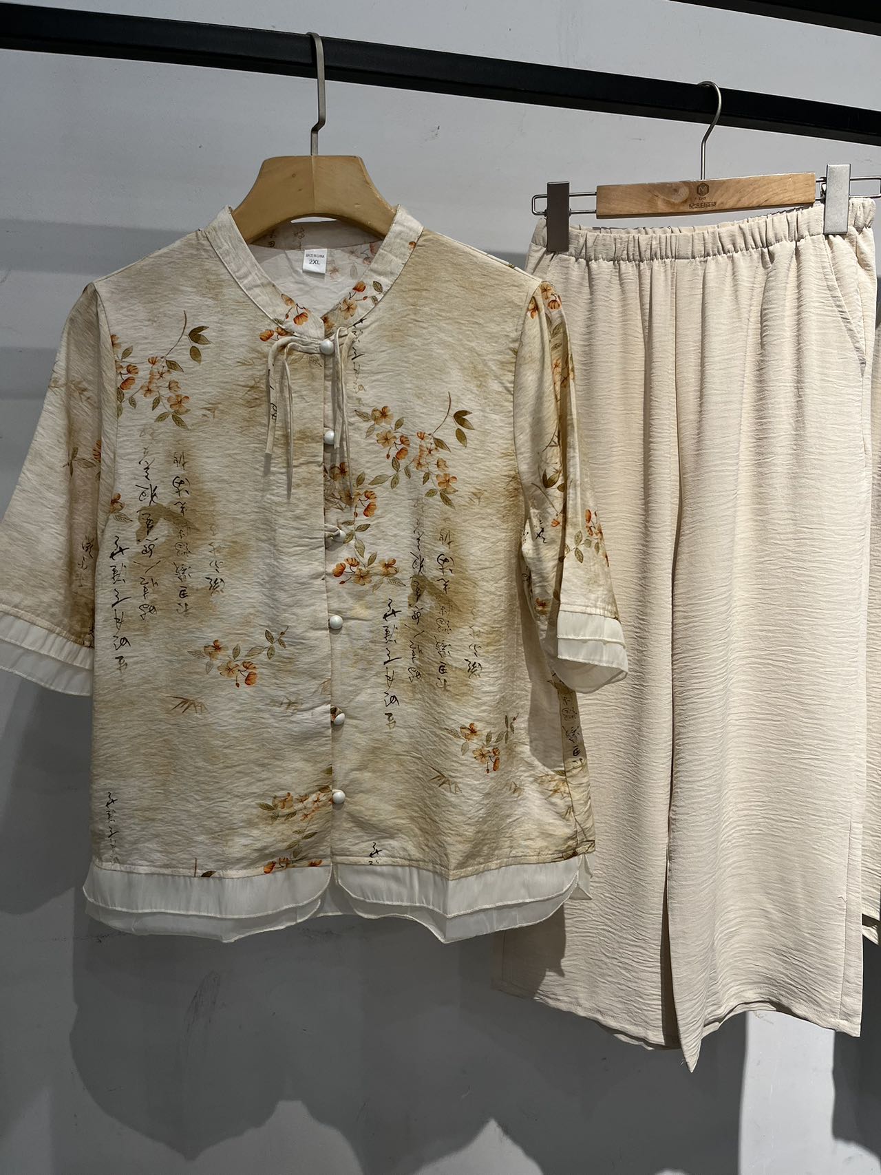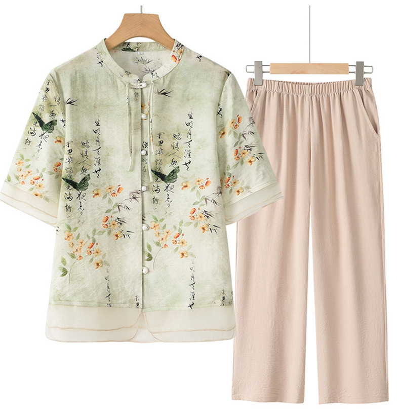 【YW】无忧购国风盘扣印花百搭中老年休闲套装996(截单后7天发货)