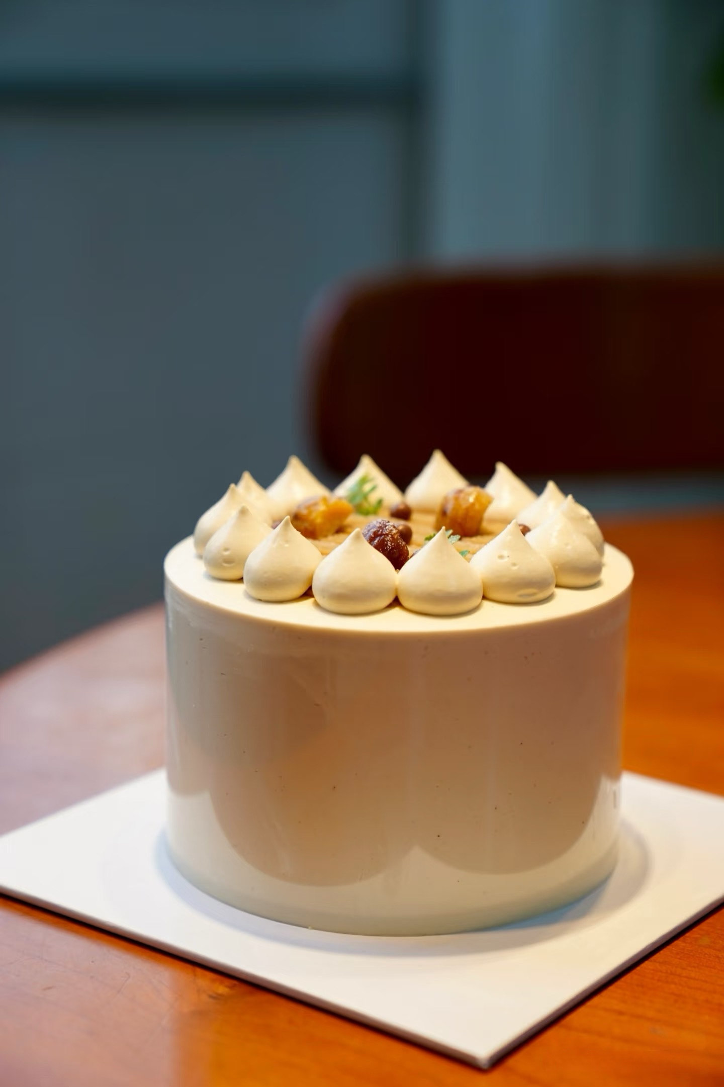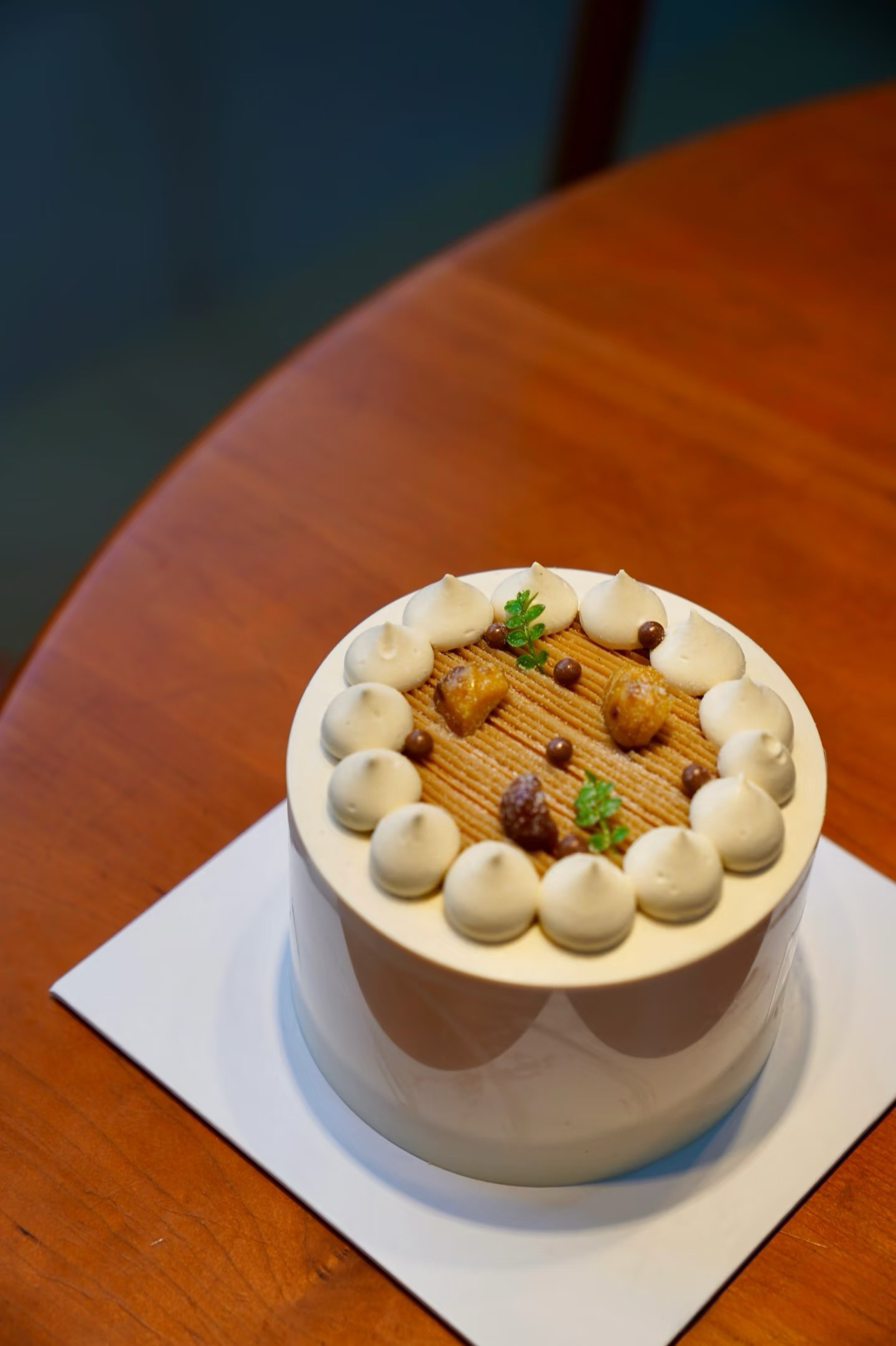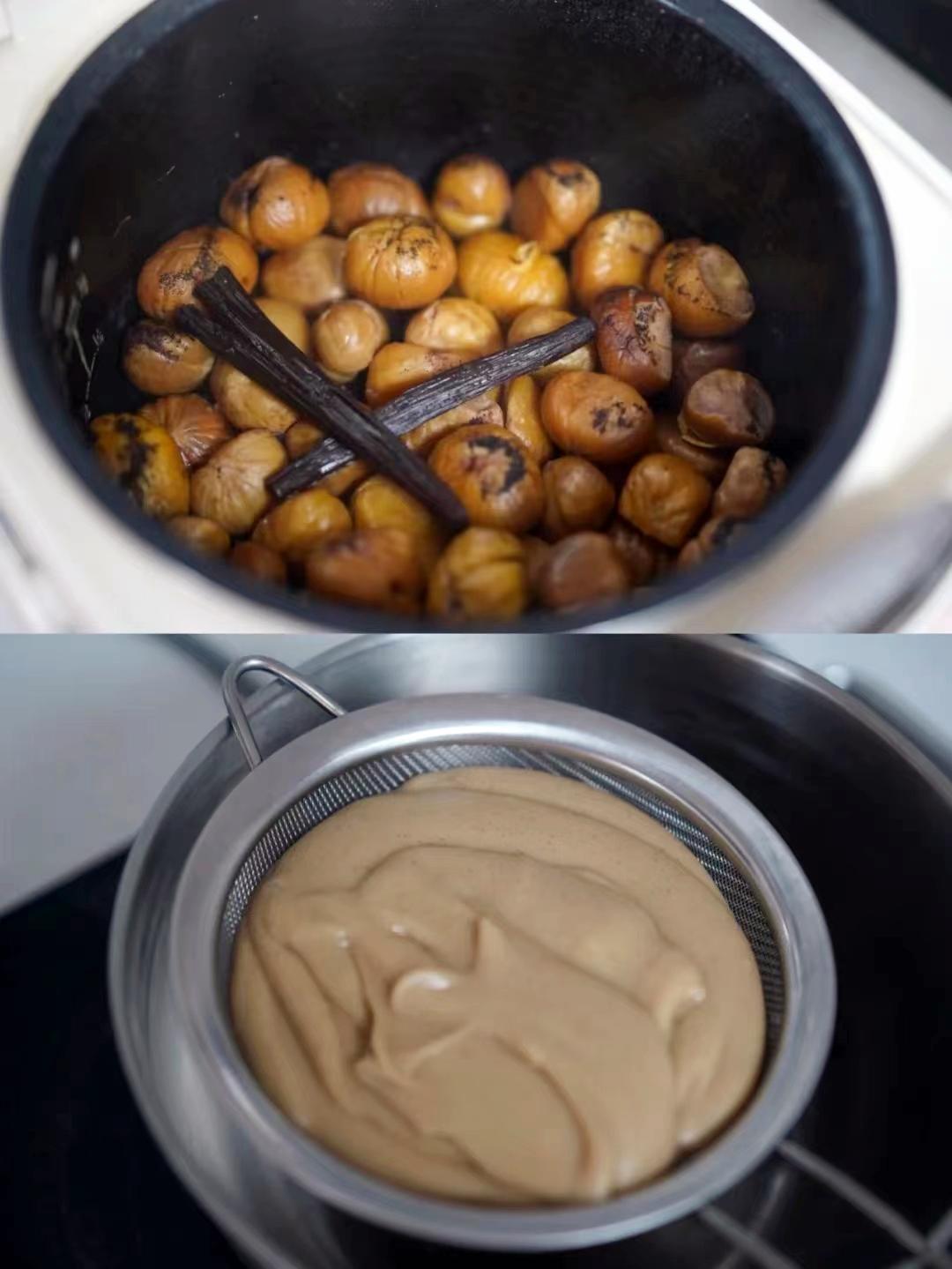 「食材」100%法国 / 新西兰动物奶油,可可乳酪戚风胚,自制栗茸,栗子,摩卡咖啡,比利时脆珠。