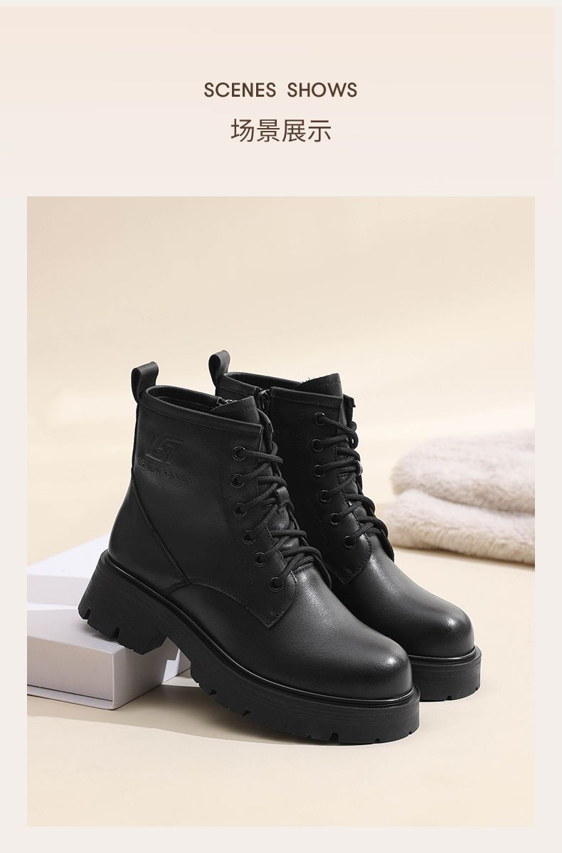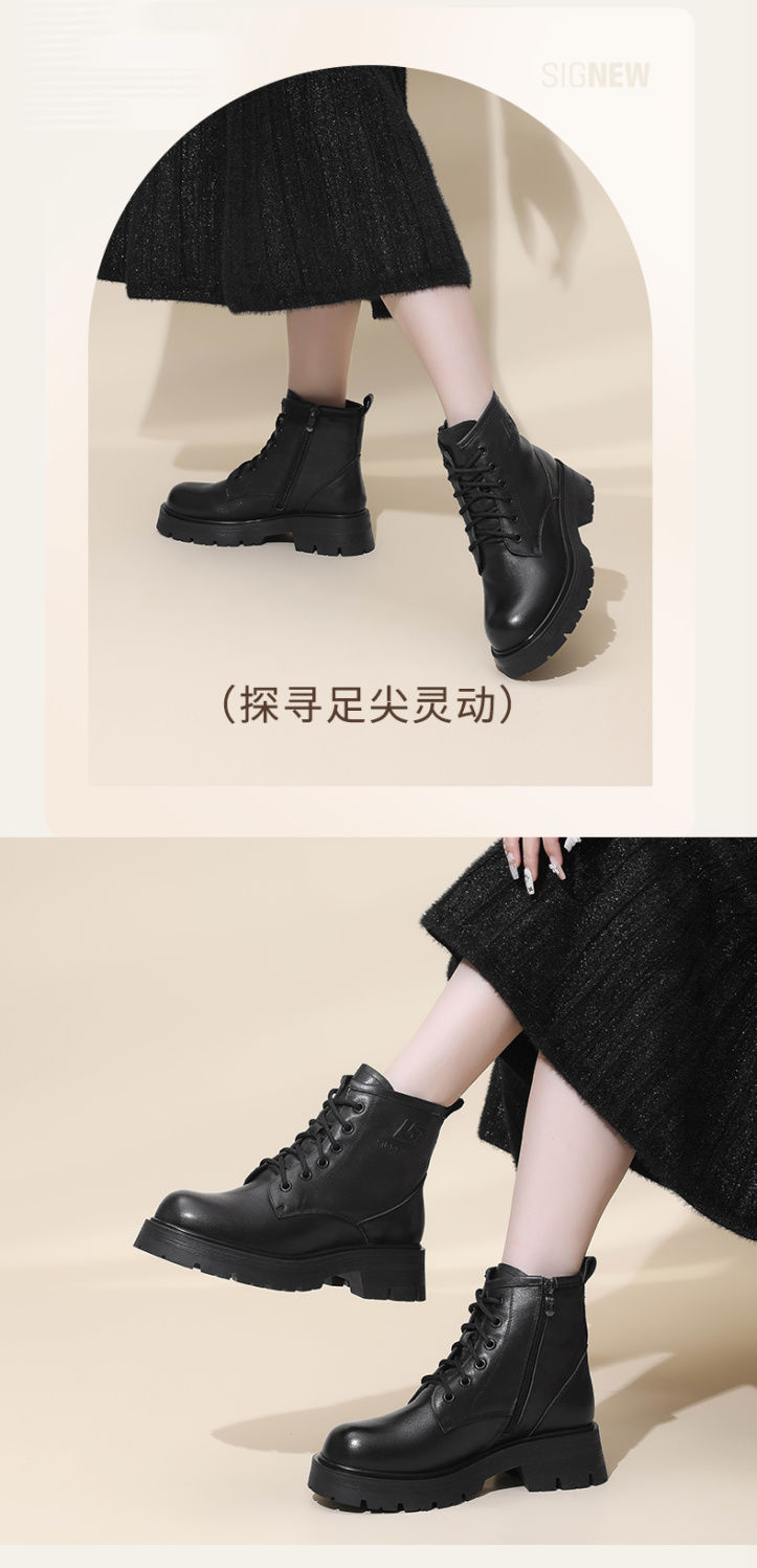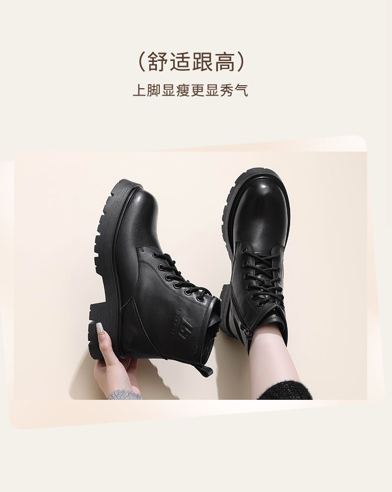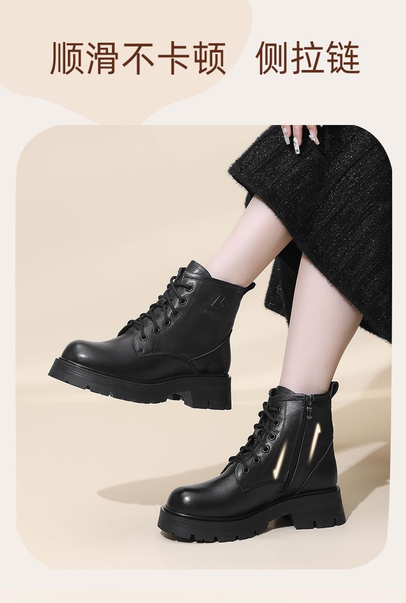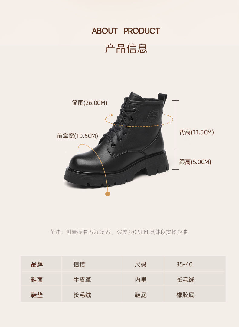 信诺真皮女士马丁靴厚底增高短靴2024冬季新款加绒加厚棉鞋妈妈鞋X24M118-102