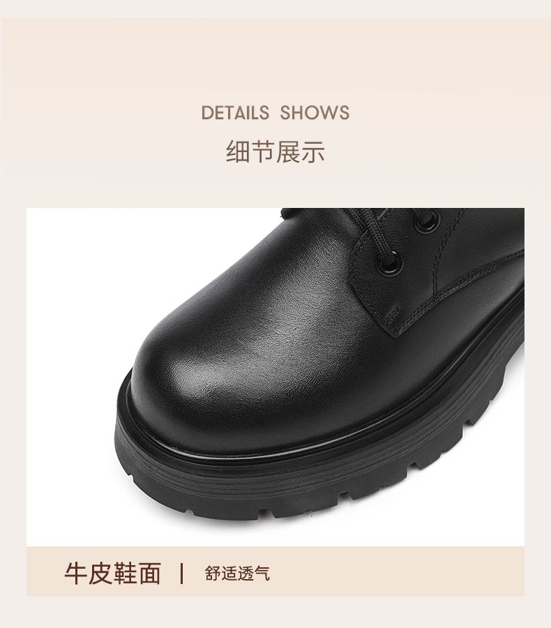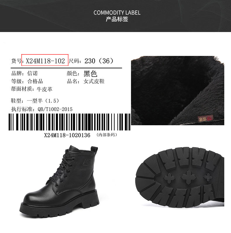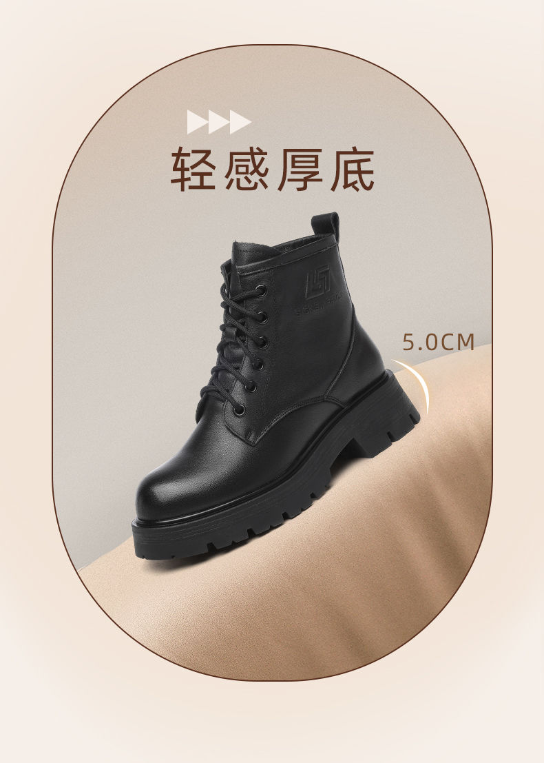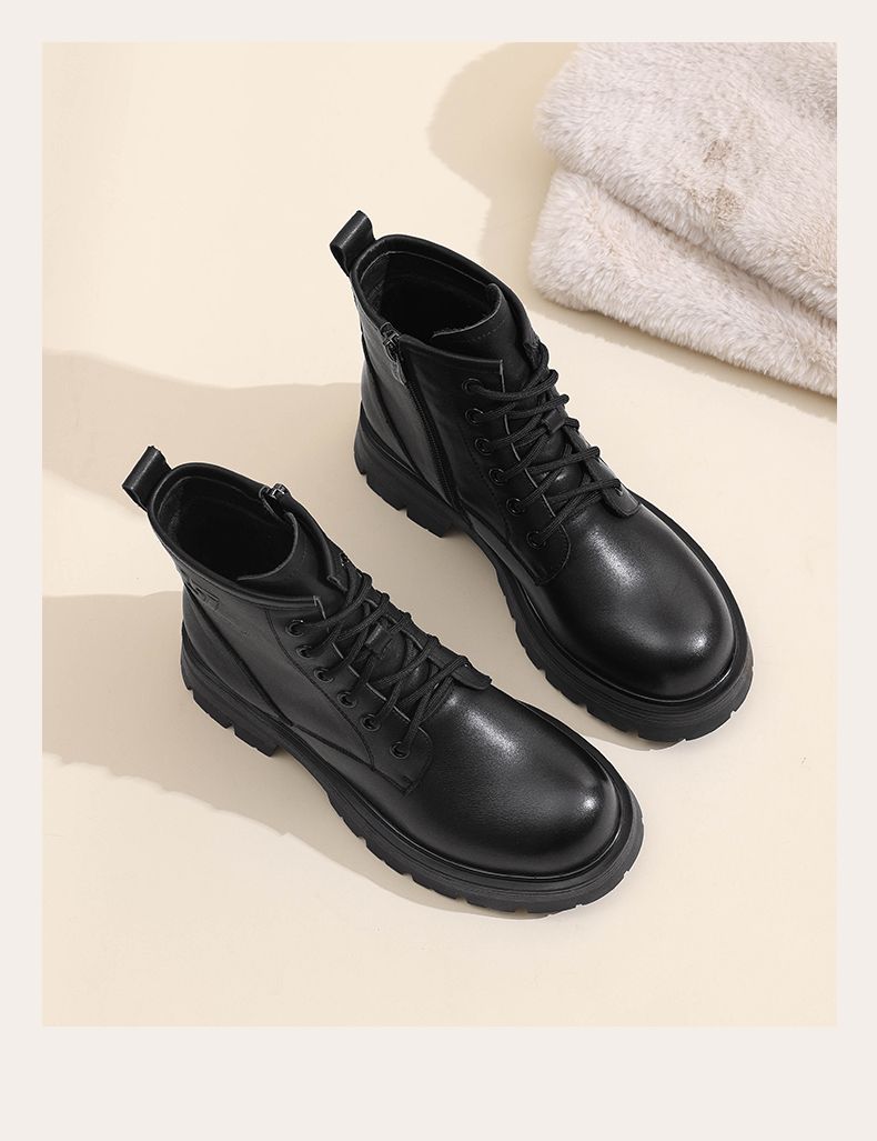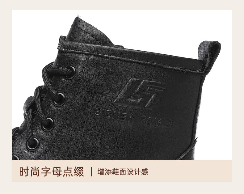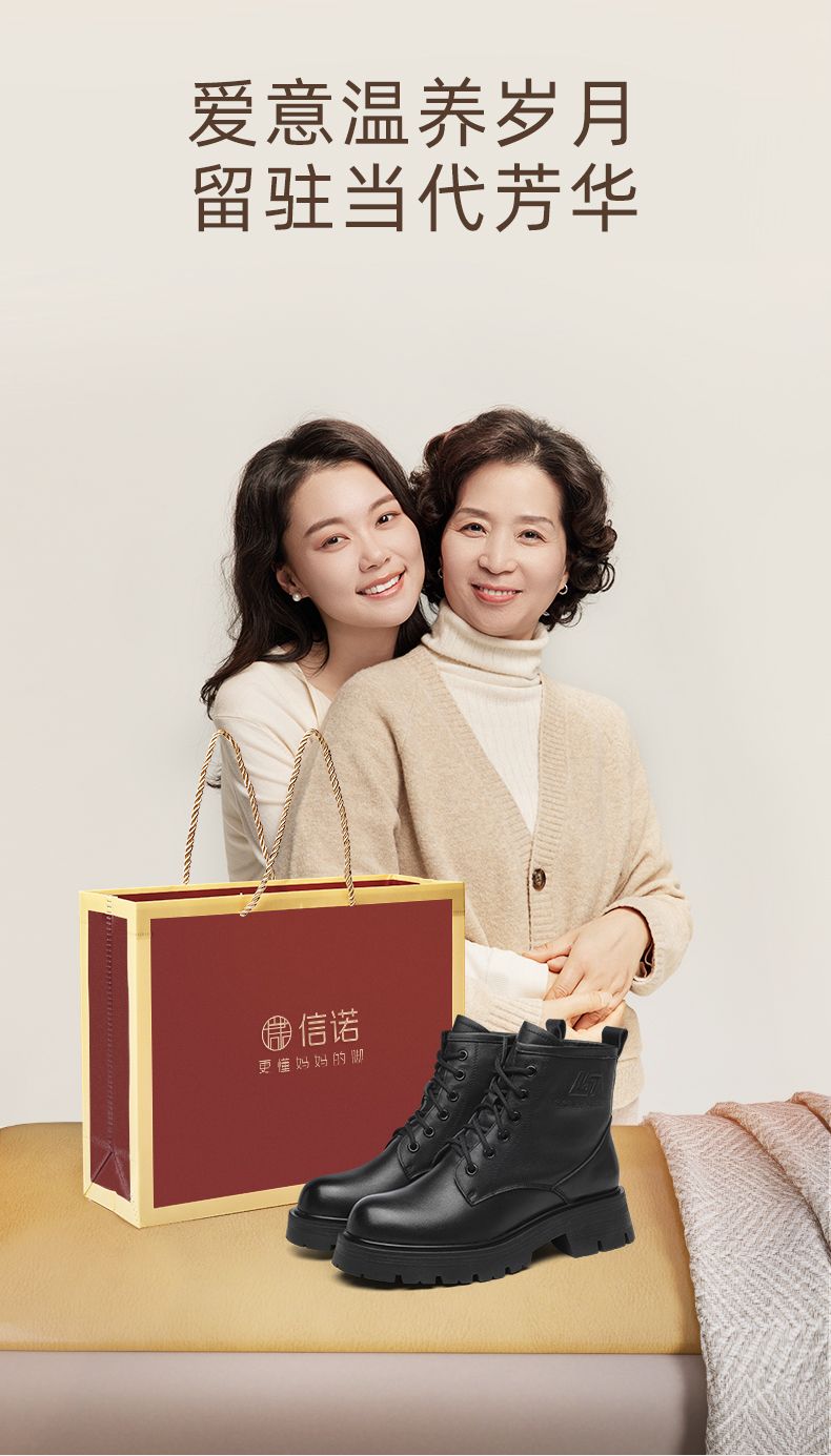 信诺真皮女士马丁靴厚底增高短靴2024冬季新款加绒加厚棉鞋妈妈鞋X24M118-102