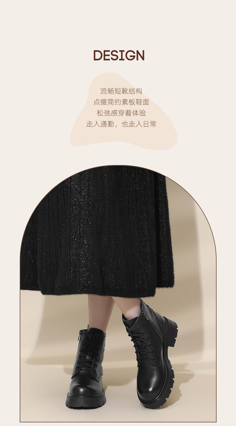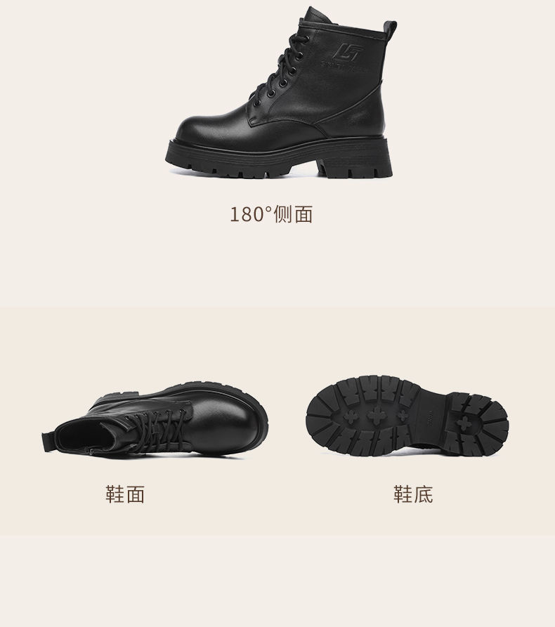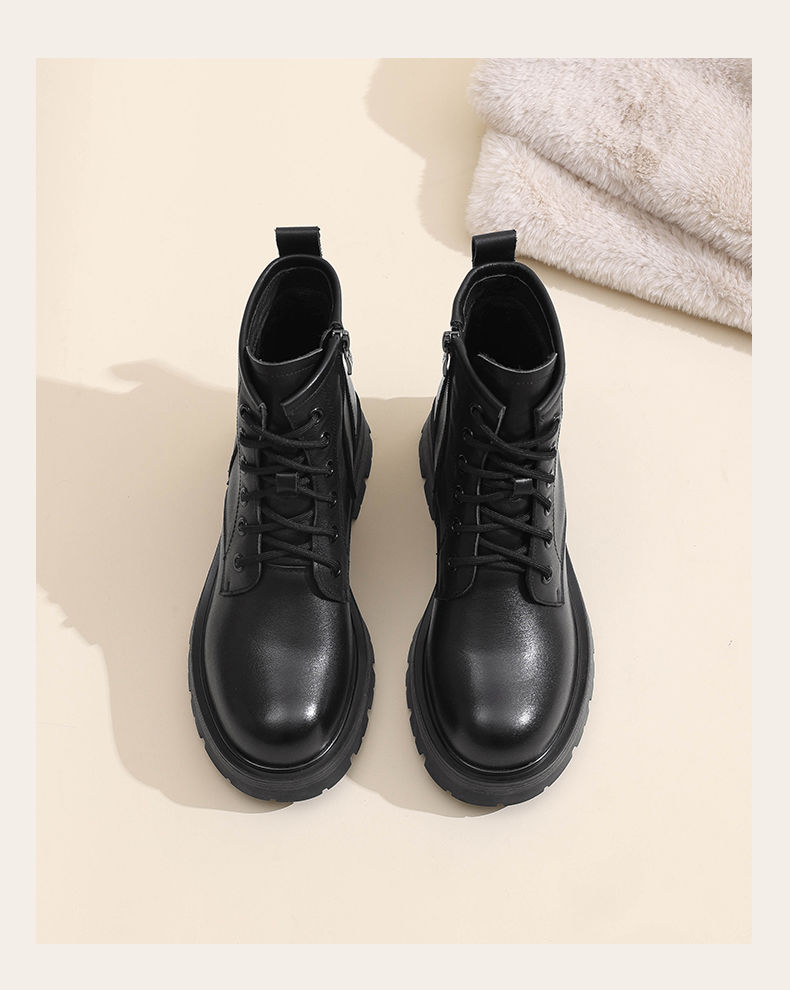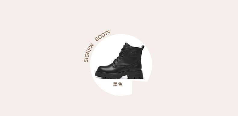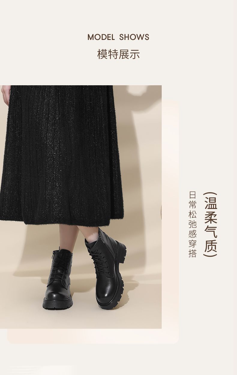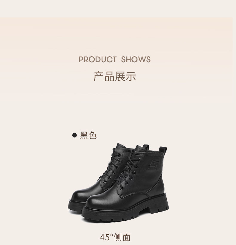 信诺真皮女士马丁靴厚底增高短靴2024冬季新款加绒加厚棉鞋妈妈鞋X24M118-102