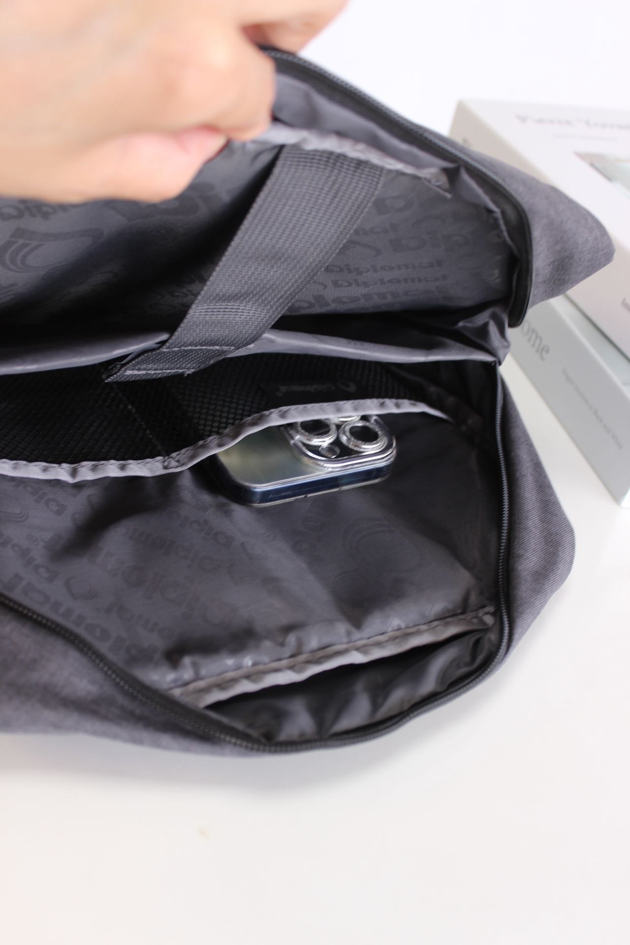 ✅背带减负设计 ! 背负系统的肩带设计,贴合肩部,能减轻背负压力 。 正面的 “Diplomat” 品牌标识清晰,简约不突兀,彰显品牌辨识度,提升包包精致感 。