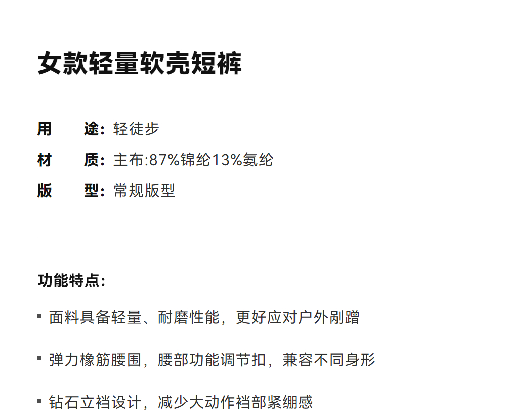 KAILAS凯乐石 户外运动 女款软壳短裤 KG2419404【Z】