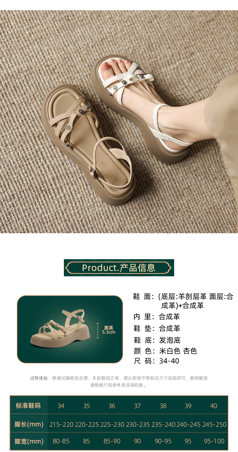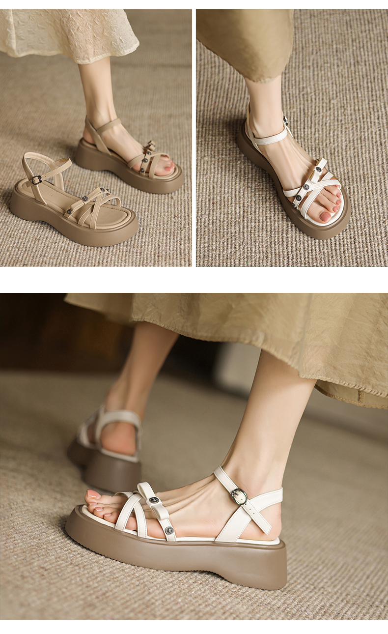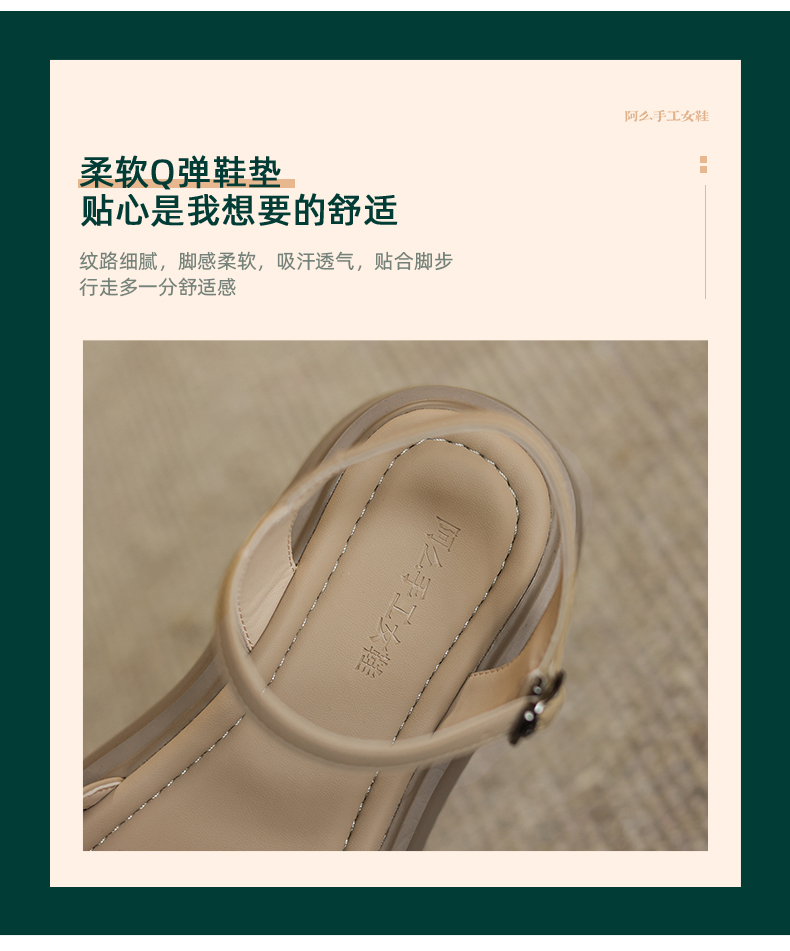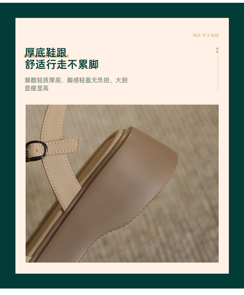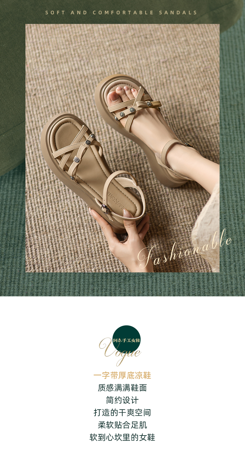 阿么手工女鞋舒适厚底松糕鞋配裙子复古一字带夏季凉鞋软底5.5CM