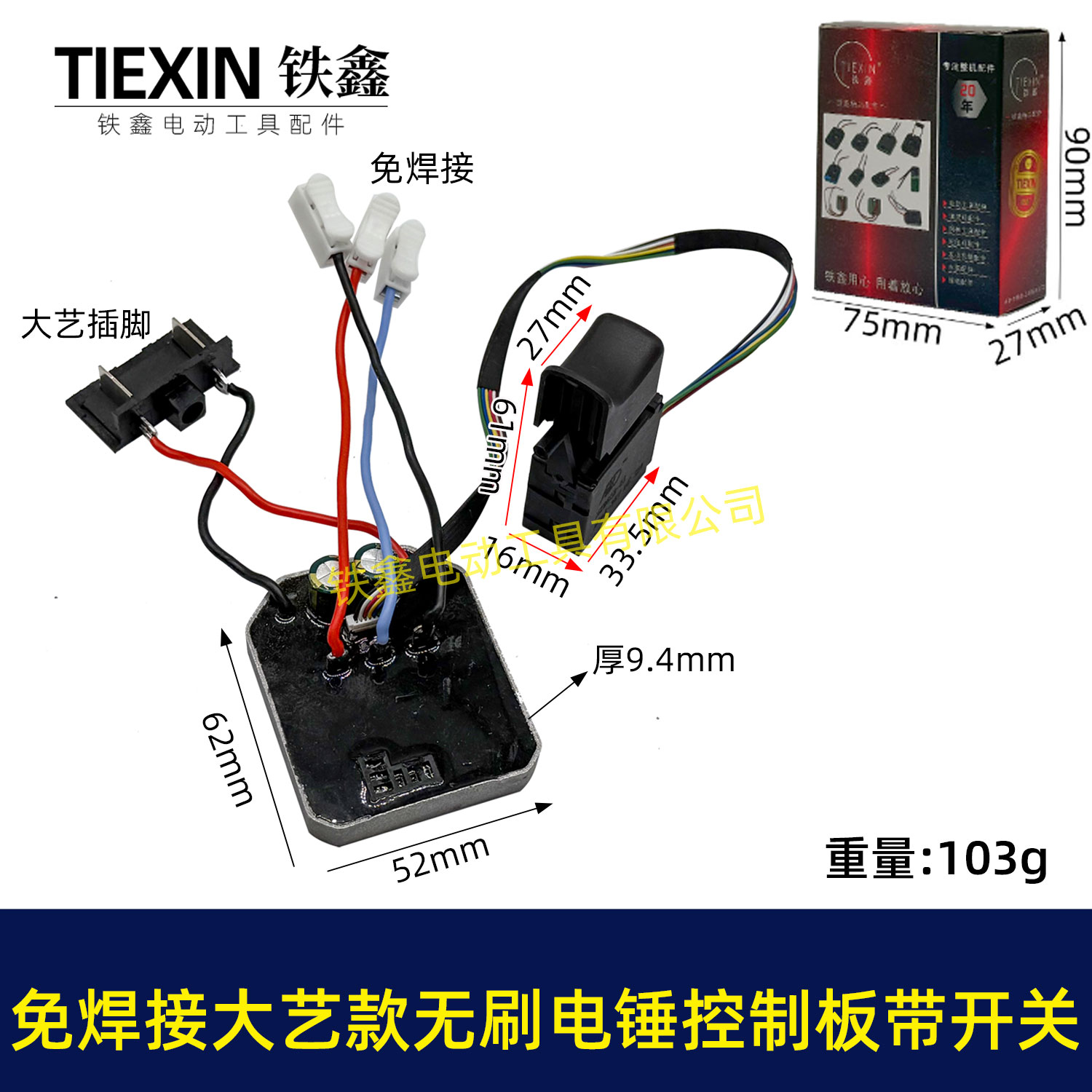 【货号04270】免焊接大艺款无刷锂电电锤控制板带开关锂电冲击钻机控制器大功率保护板