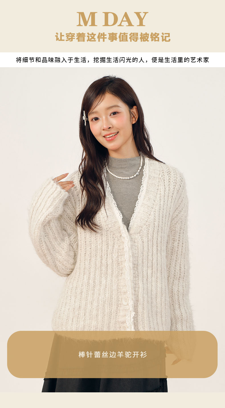 棒针蕾丝边羊驼开衫-纪念日百货门店同款166593344
