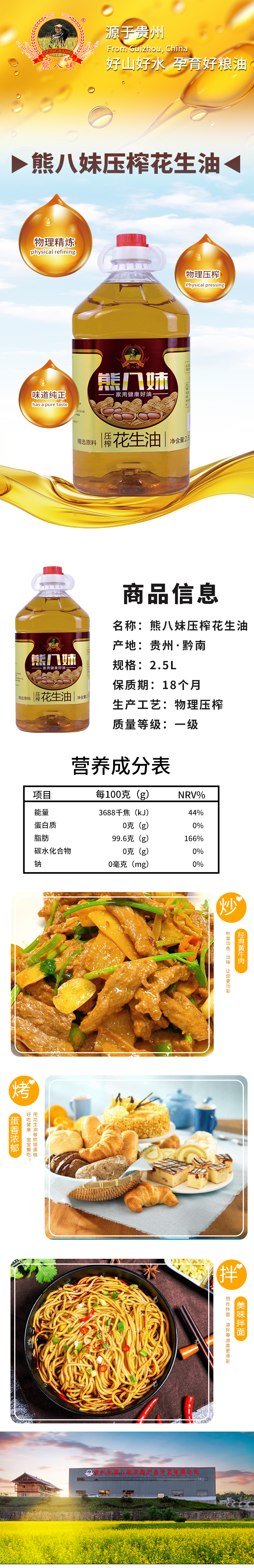 【熊八妹压榨花生油】2.5L 乡村风味 营养健康必备