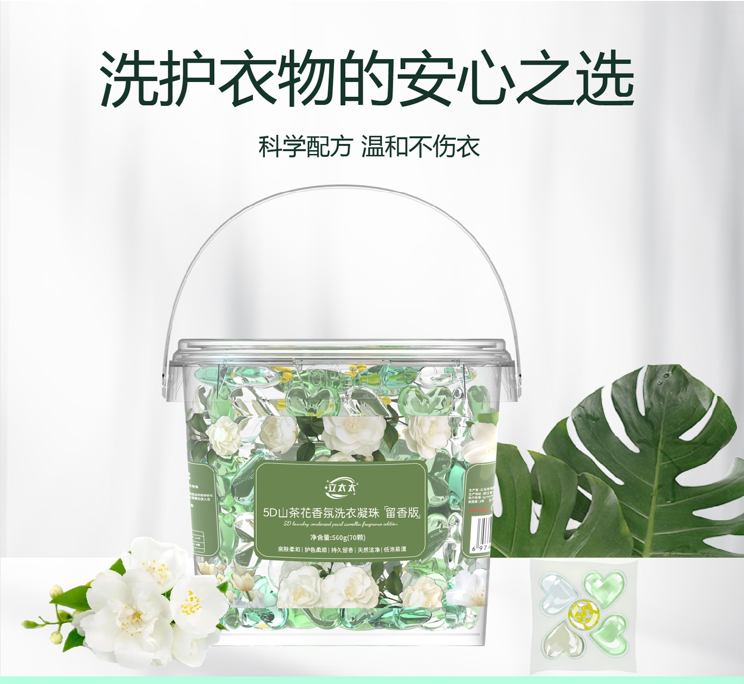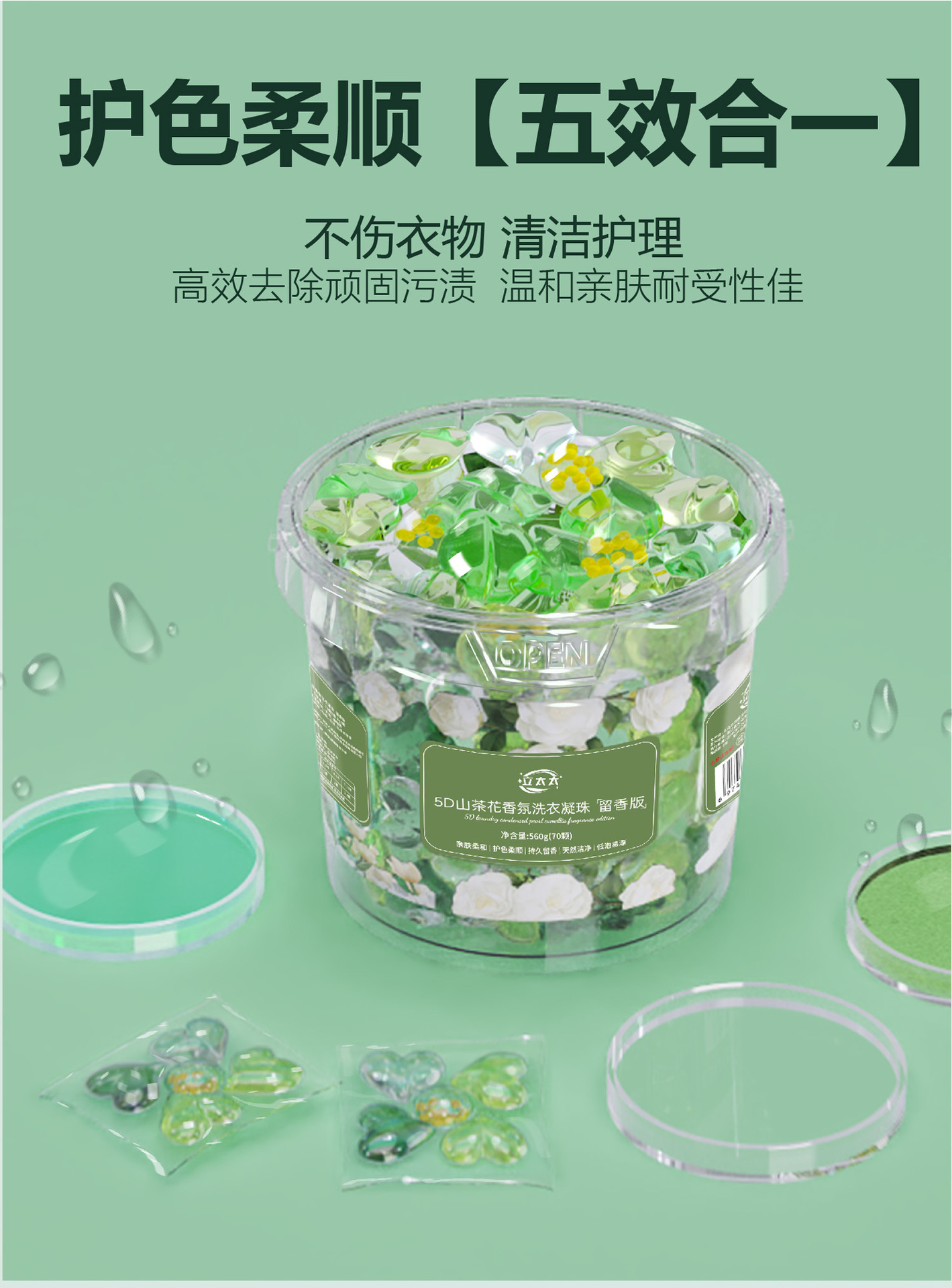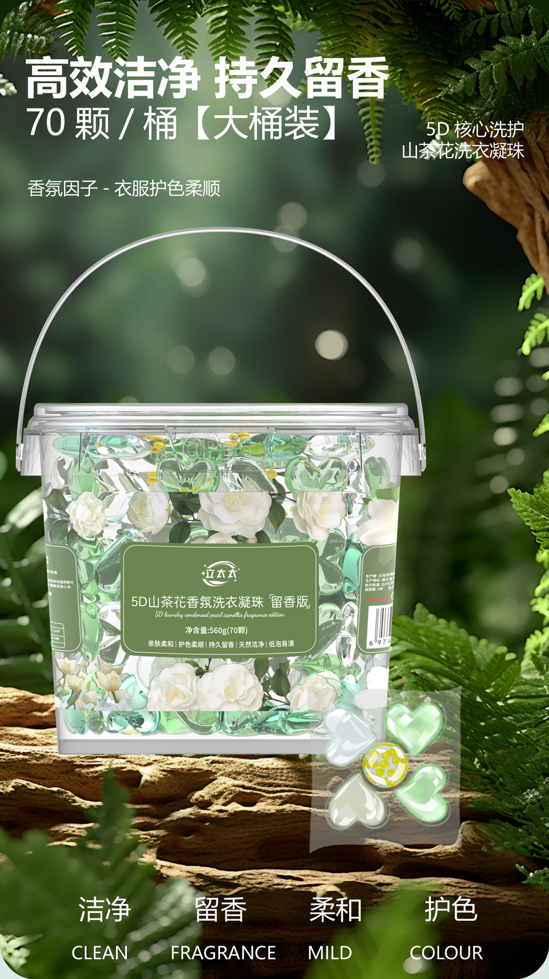 「19.9到手1大桶!五合一洗衣凝珠」山茶花洗衣凝珠桶装 五合一留香柔顺洗衣球去污浓缩洗衣液居家日用清洁工具
