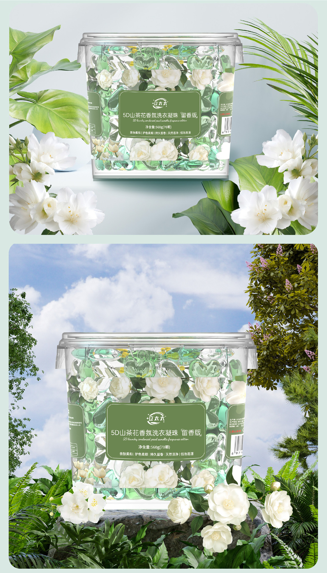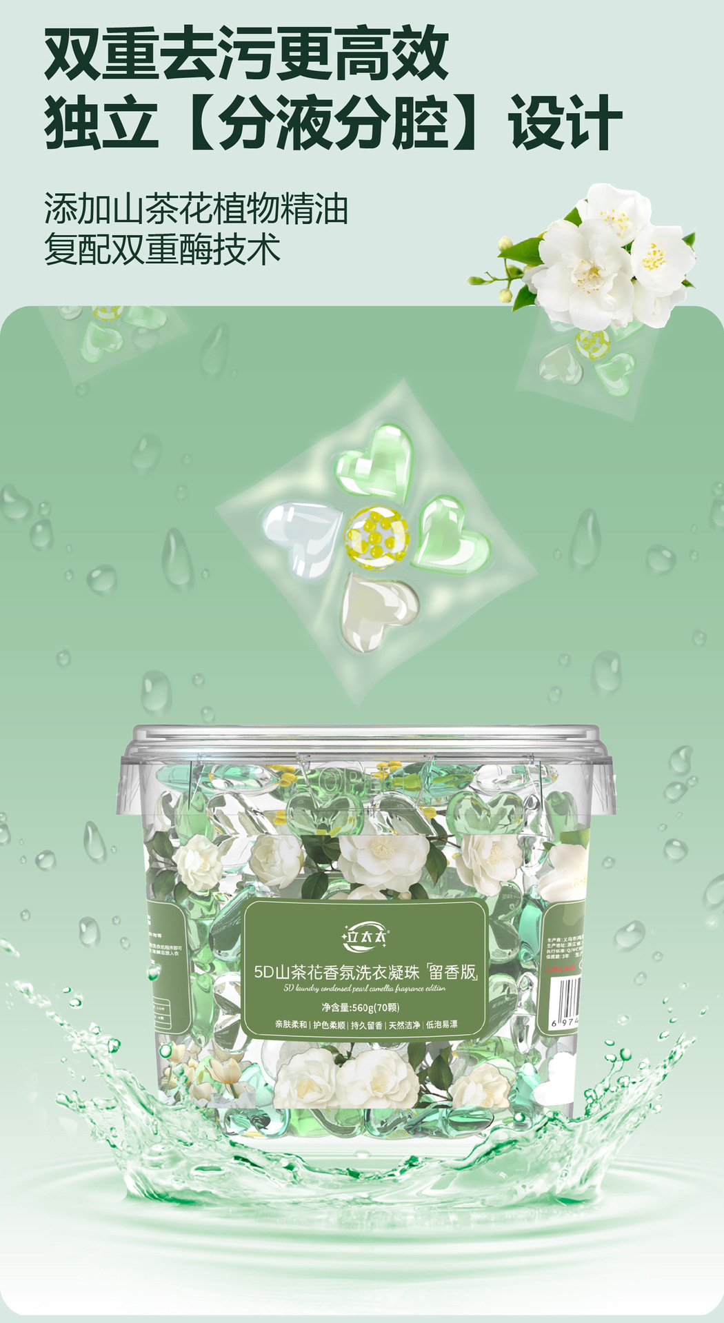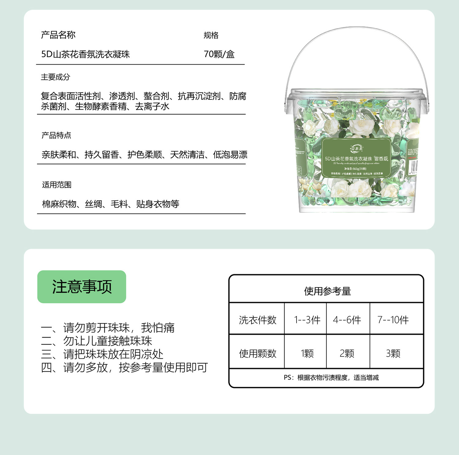 「19.9到手1大桶!五合一洗衣凝珠」山茶花洗衣凝珠桶装 五合一留香柔顺洗衣球去污浓缩洗衣液居家日用清洁工具