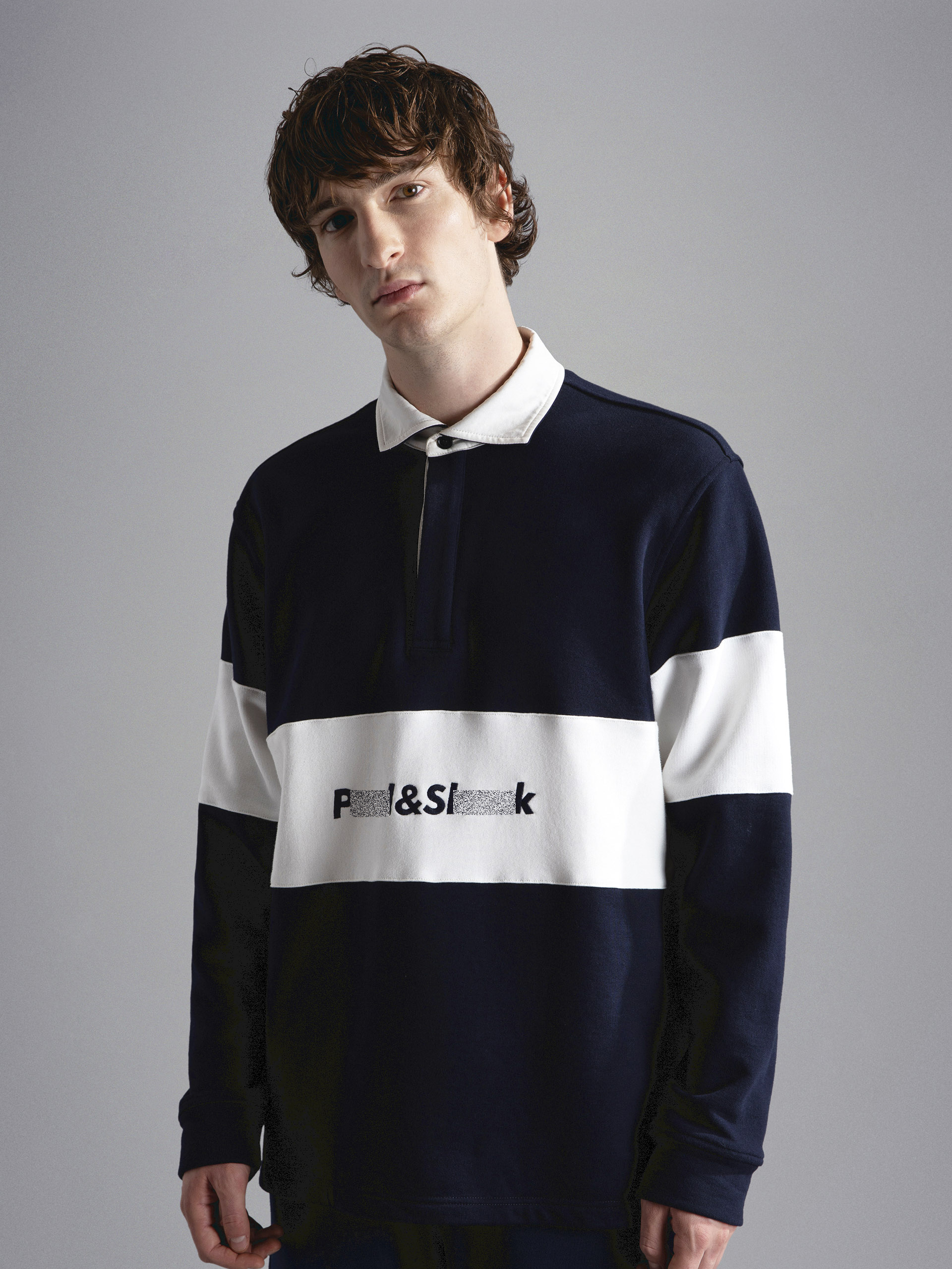 鲨鱼 2024冬季新款 男士 刺绣字母标 纯棉长袖拼色POLO衫 PSS162